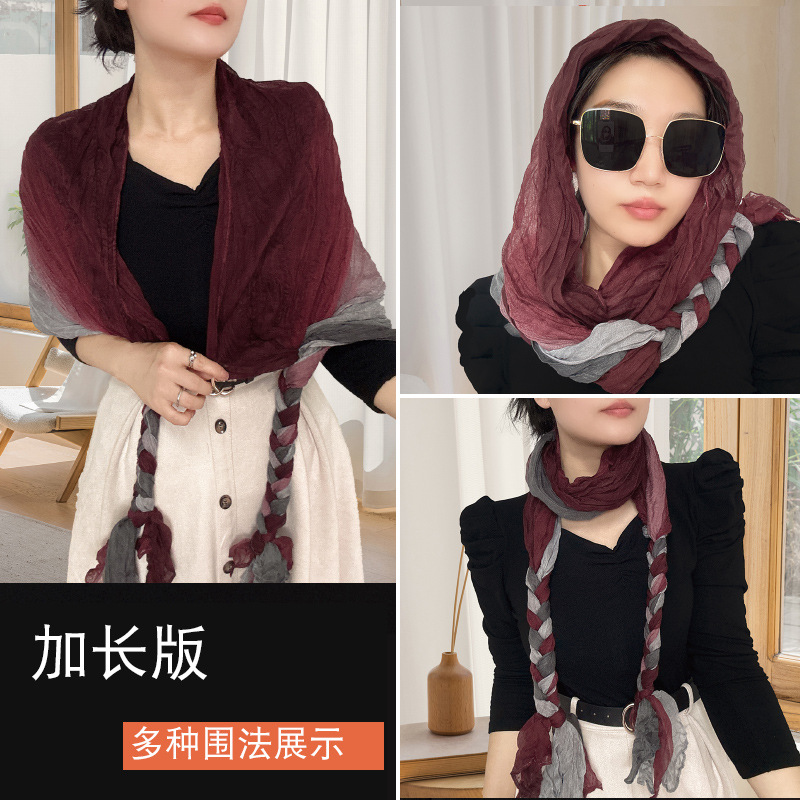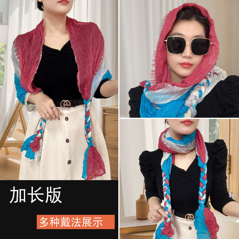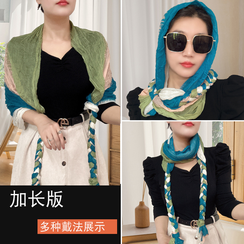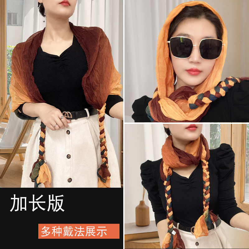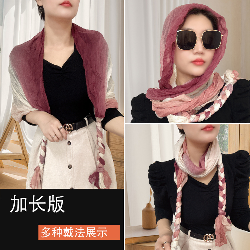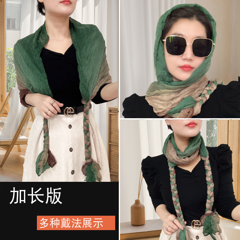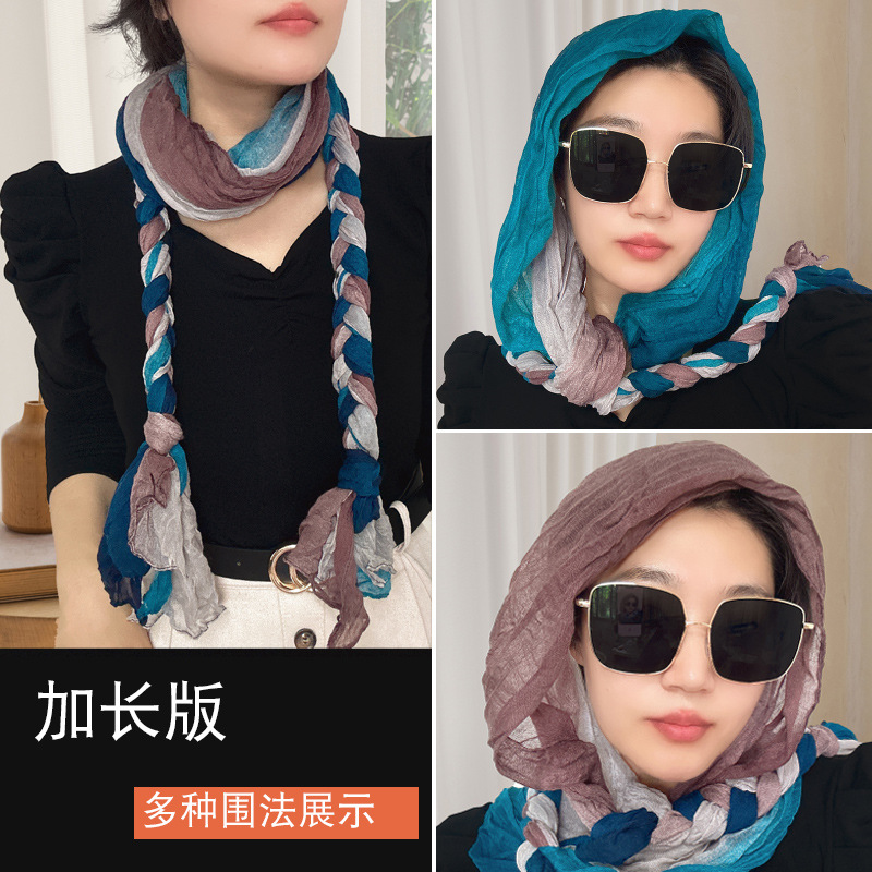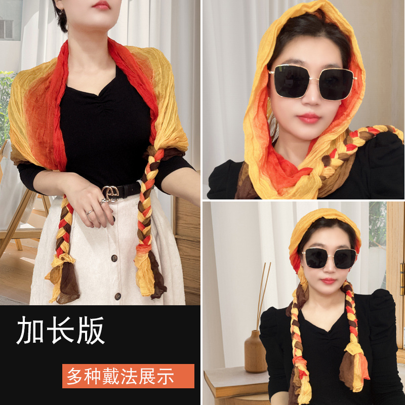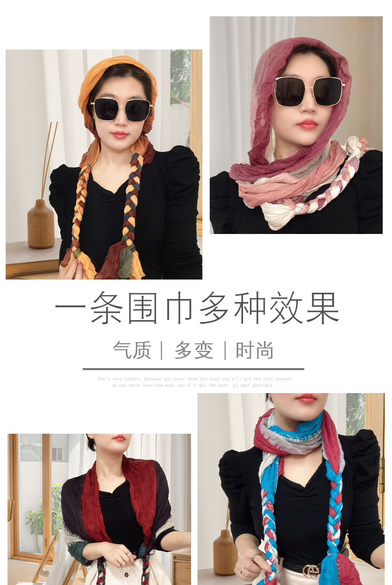 [확장 버전] 손으로 짠 머리띠 봄과 여름 선 스크린 폴드 백 스카프 여성 목도리 가을과 겨울 스카프스토어 가기