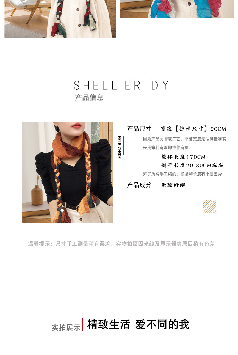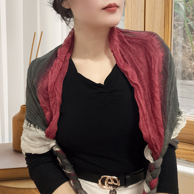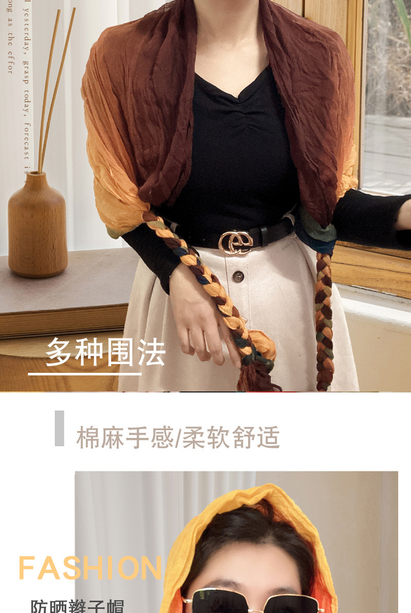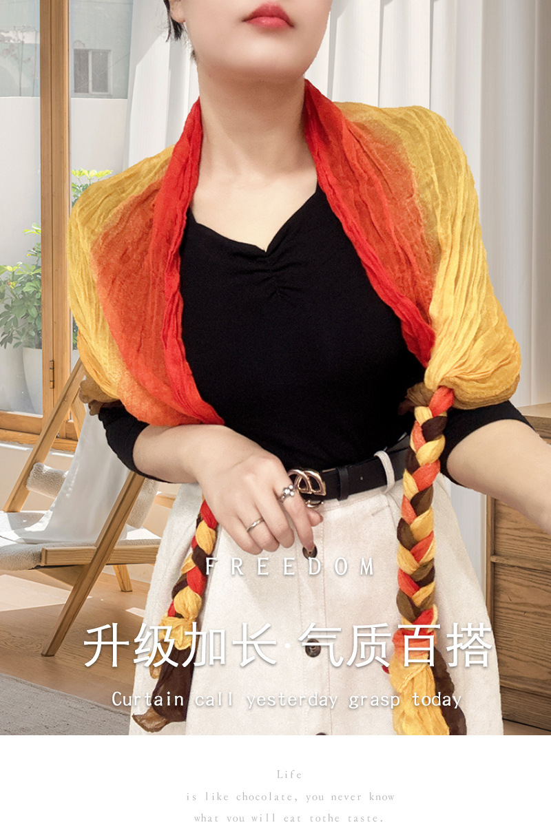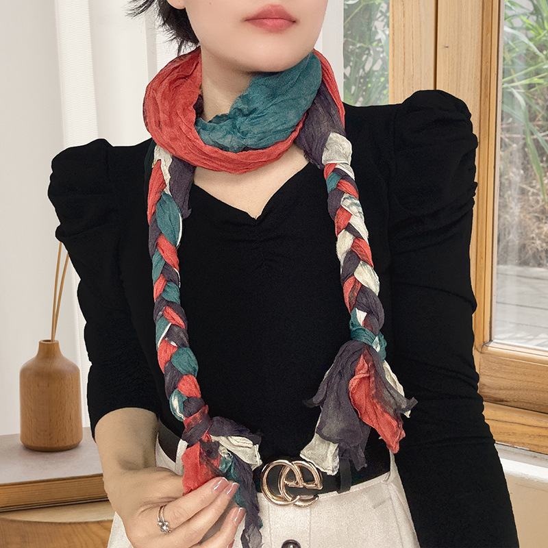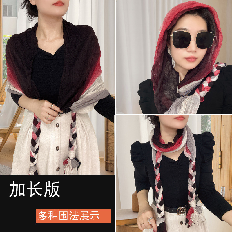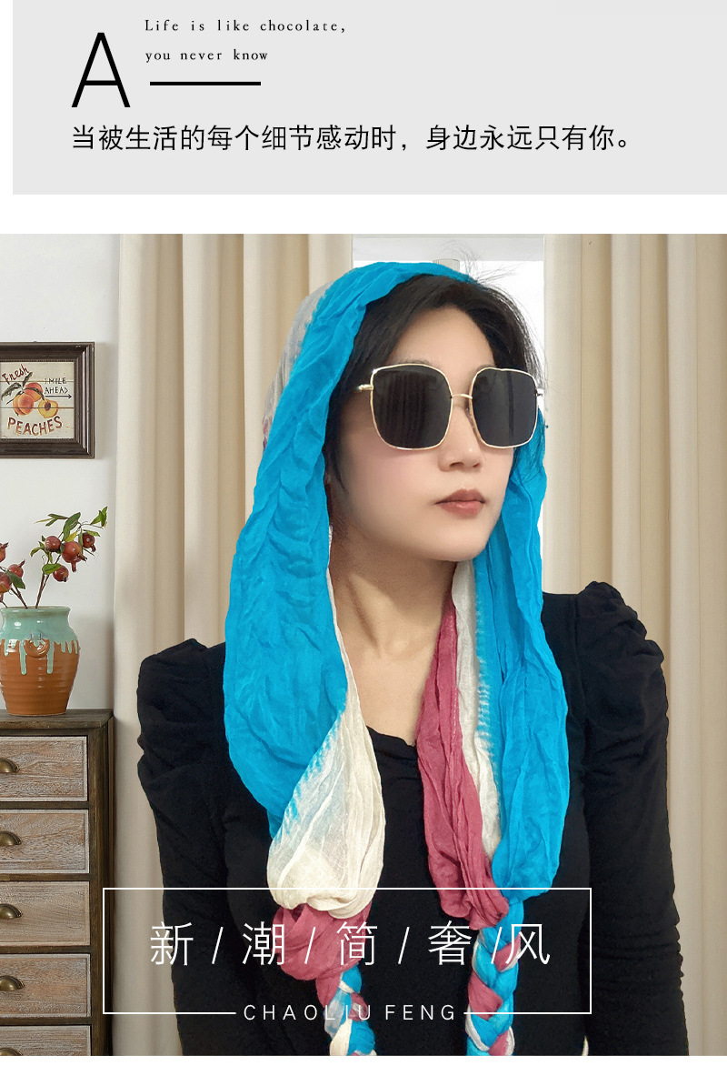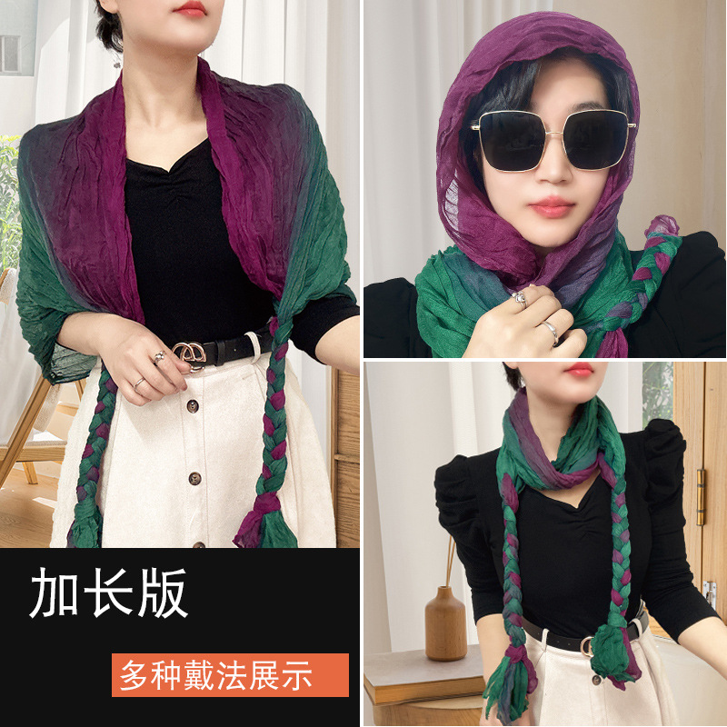 [확장 버전] 손으로 짠 머리띠 봄과 여름 선 스크린 폴드 백 스카프 여성 목도리 가을과 겨울 스카프스토어 가기