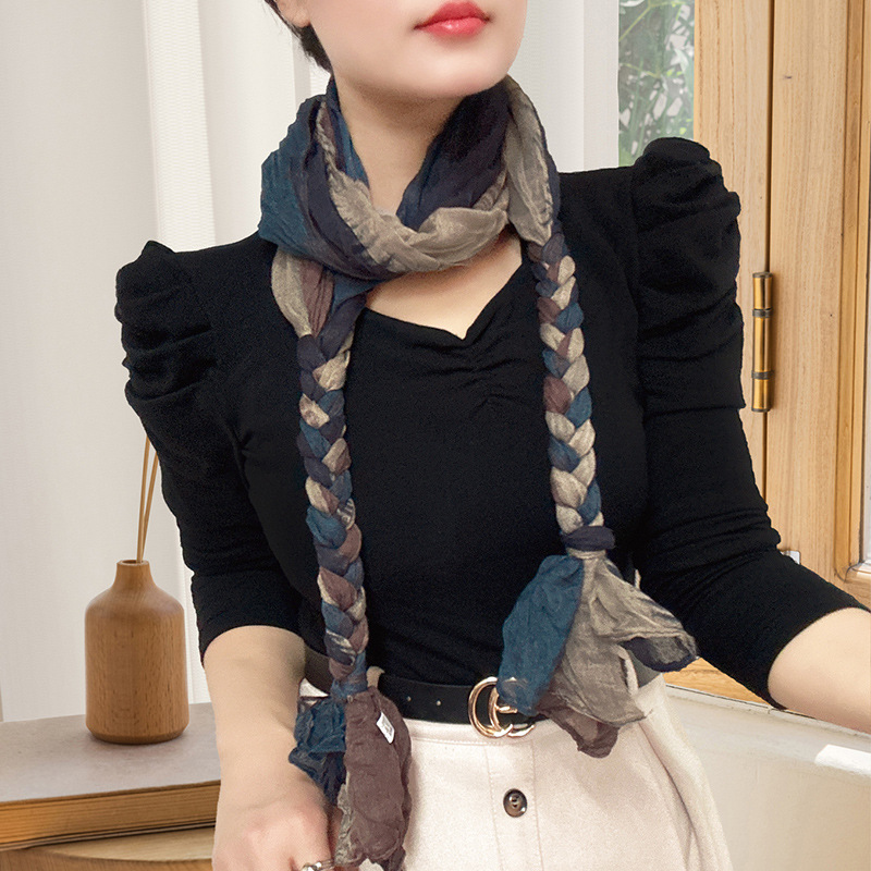 [확장 버전] 손으로 짠 머리띠 봄과 여름 선 스크린 폴드 백 스카프 여성 목도리 가을과 겨울 스카프
