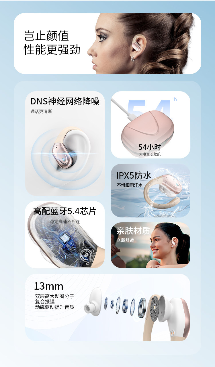 새로운 개인 모델 지능형 기술 음향 소음 감소 디지털 디스플레이 충전함 교수형 귀 무선 헤드셋 HD 블루투스 헤드셋