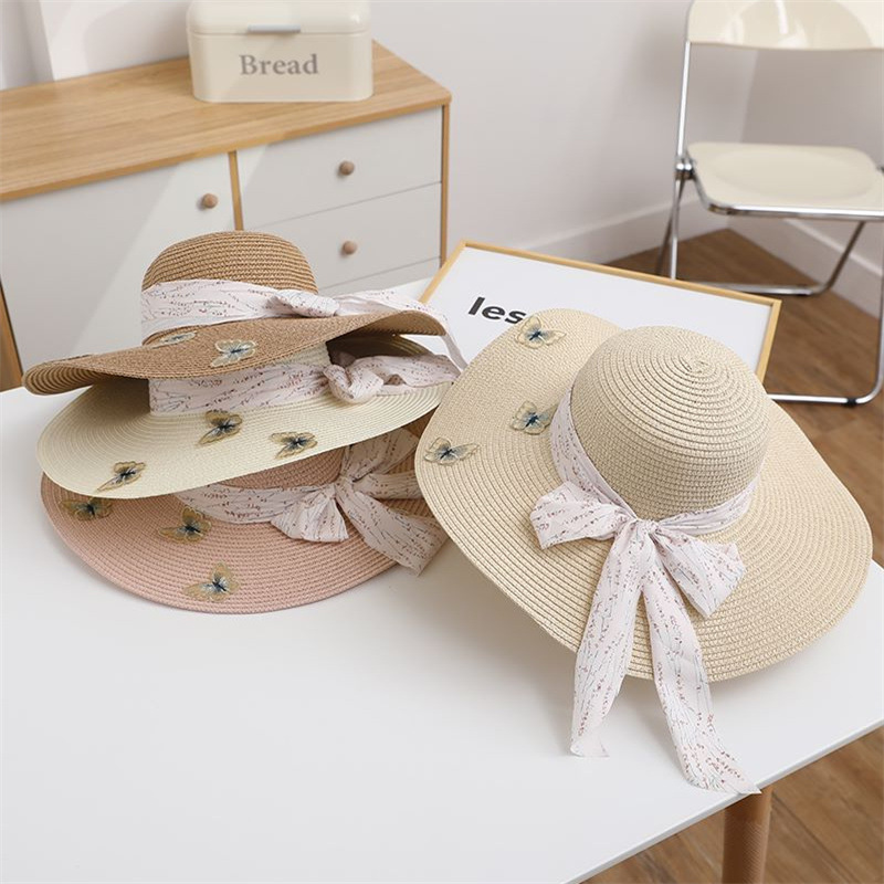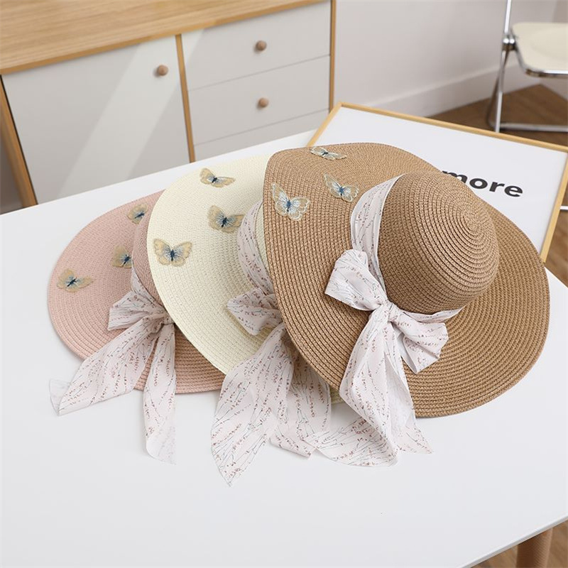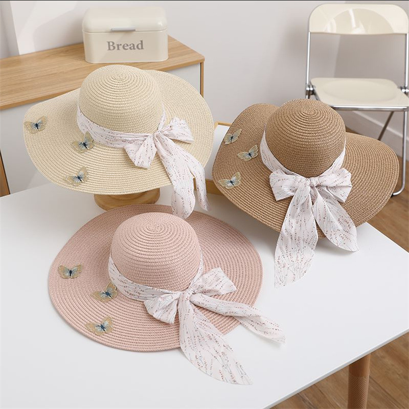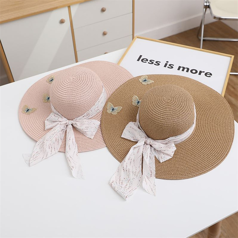 한국 비치 모자 여성용 여름 비치 썬햇 여행 휴가 어부 모자 태양 모자 모든 경기 나비 밀짚 모자