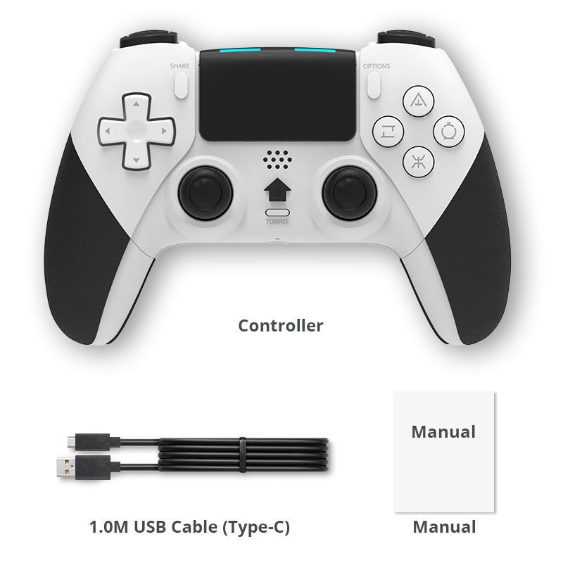 打开您的PS4主机 ,使用 Micro-USB数据线连接,然后按手柄上的“HOME”按钮,当手柄正在连接到PS4主机时,灯条呈白色闪烁,并且然后留在蓝色或其他颜色的通道灯,您可以拔掉数据线并使用手柄了。支持Windows电脑上steam、Epic级官方下载的支持手柄的游戏使用,无需安装驱动;支持苹果手机/mac电脑/Apple TV及安卓手机上的原生支持手柄的游戏(MFI/HID游戏)使用;