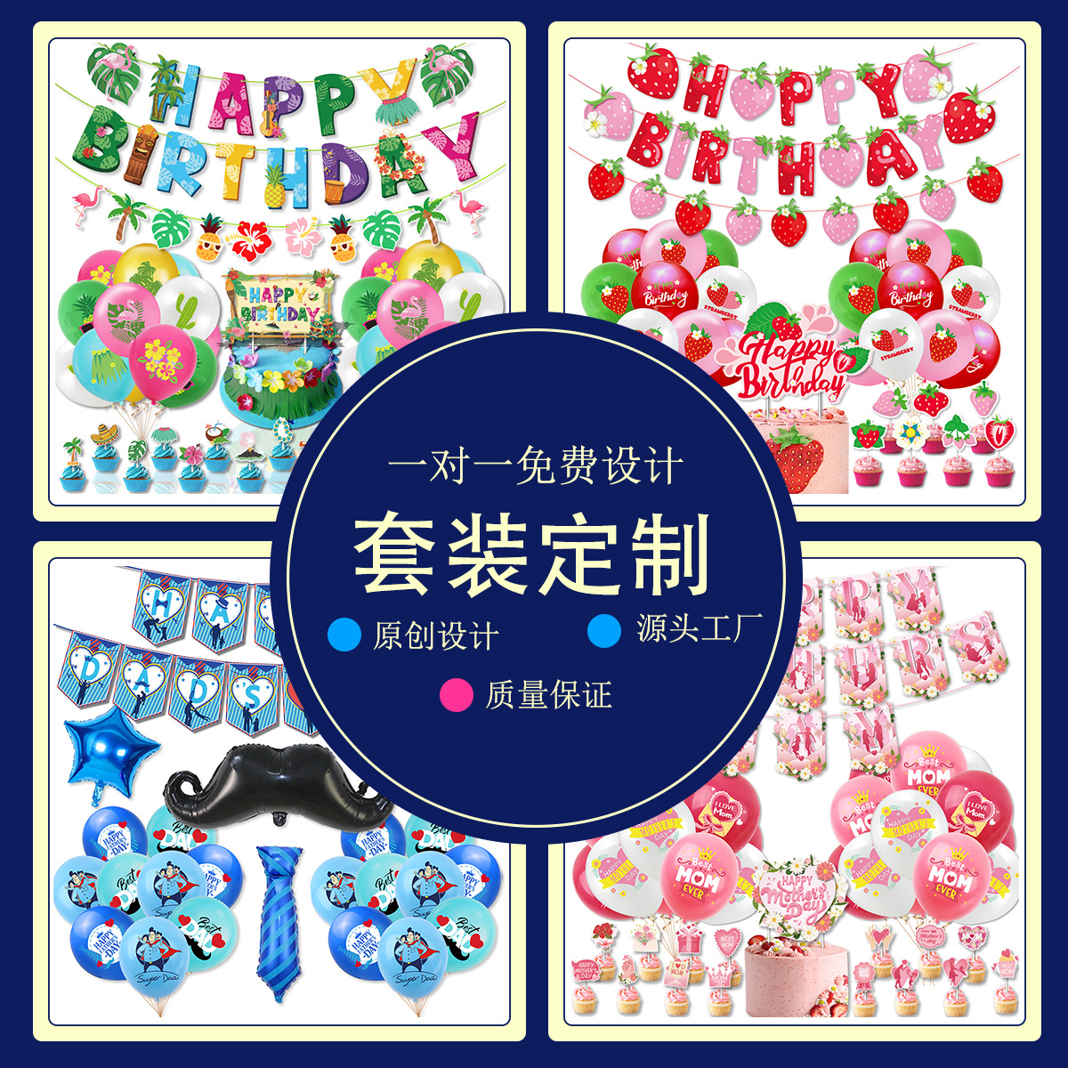 생일 파티 장식 세트 편지 깃발 케이크 카드 풍선 조합 전문 디자인 및 생산