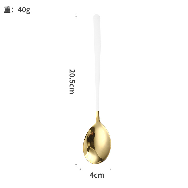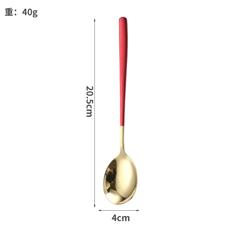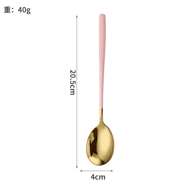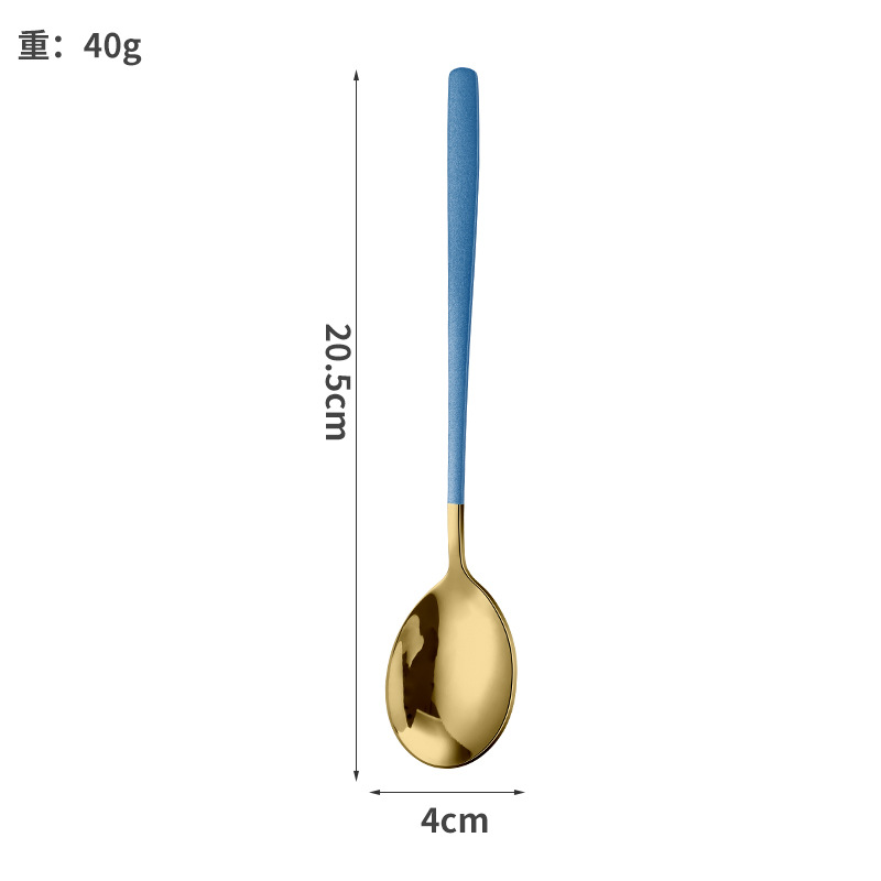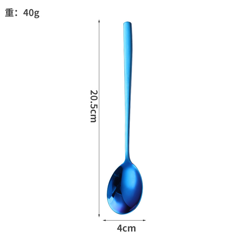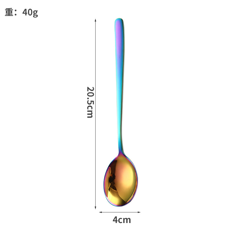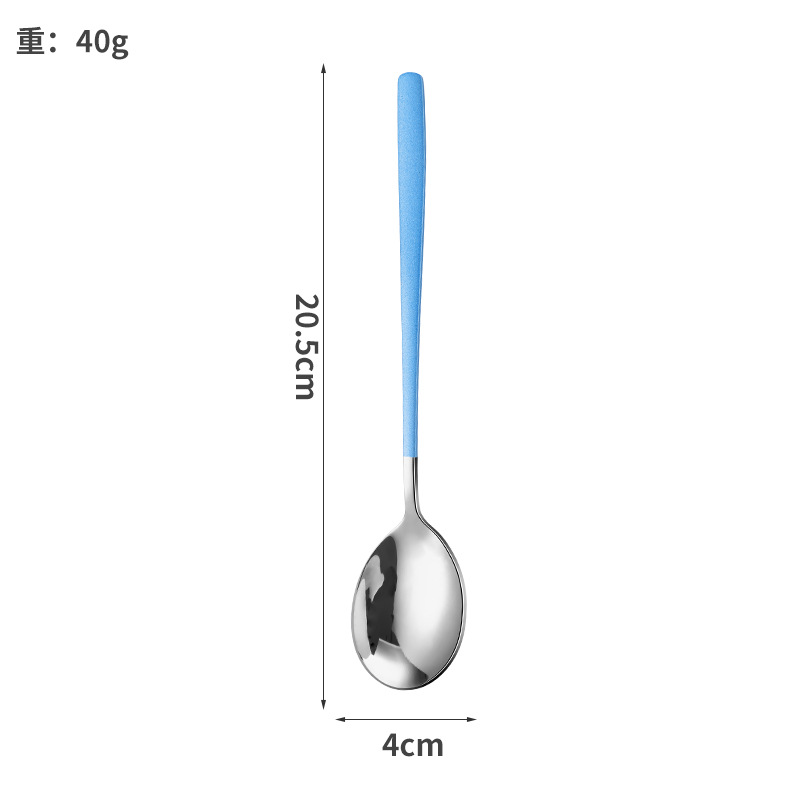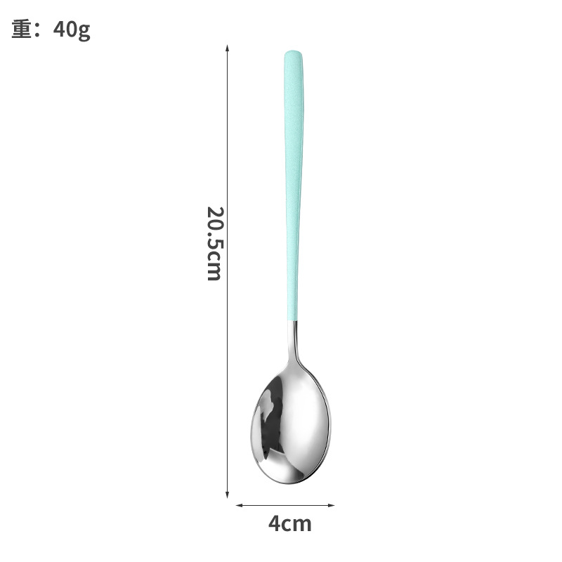 Dao Qi 304 스테인레스 스틸 스푼 한국식 긴 손잡이 샐러드 믹싱 스푼 창조적 인 색상 가정용 두꺼운 디저트 스푼