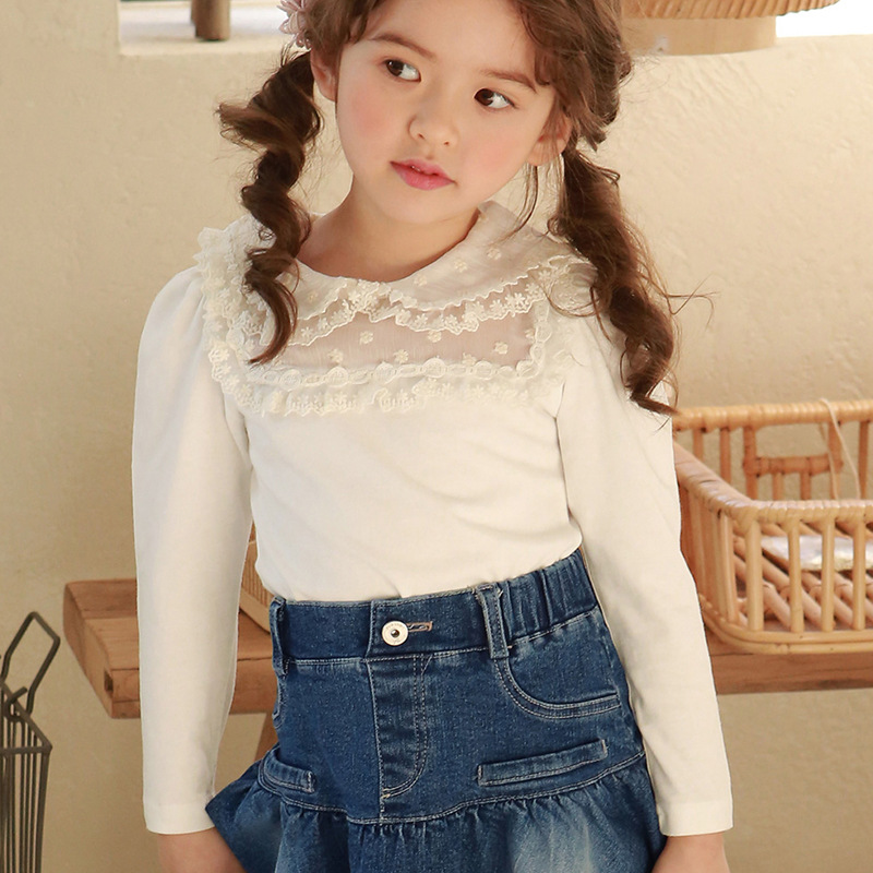 2025 새로운 가을 스타일 Strawberry Shan 한국 어린이 소녀 스타일 레이스 옷깃 긴팔 셔츠 재고 있음