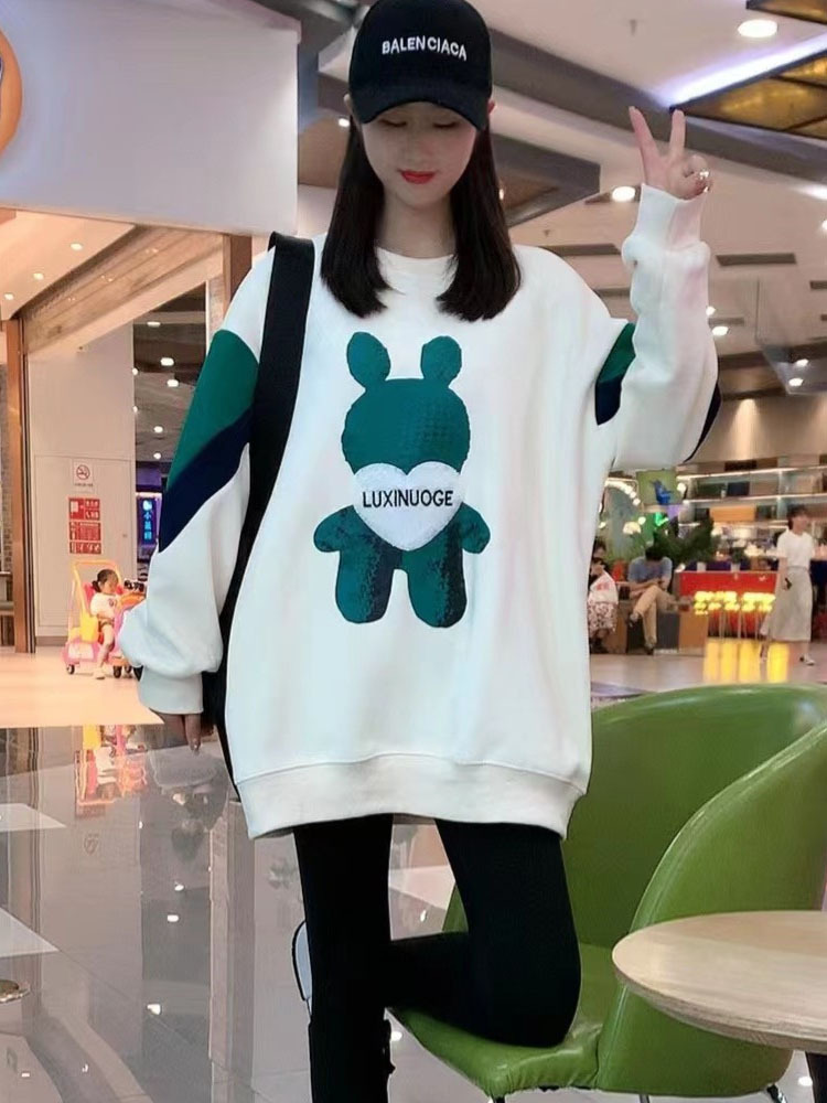 2025 봄 가을 신상 라운드넥 풀오버 스웨트셔츠 여성용 중간 길이 루즈핏 도매 캐주얼 스타일 나이를 줄여주는 상의스토어 가기