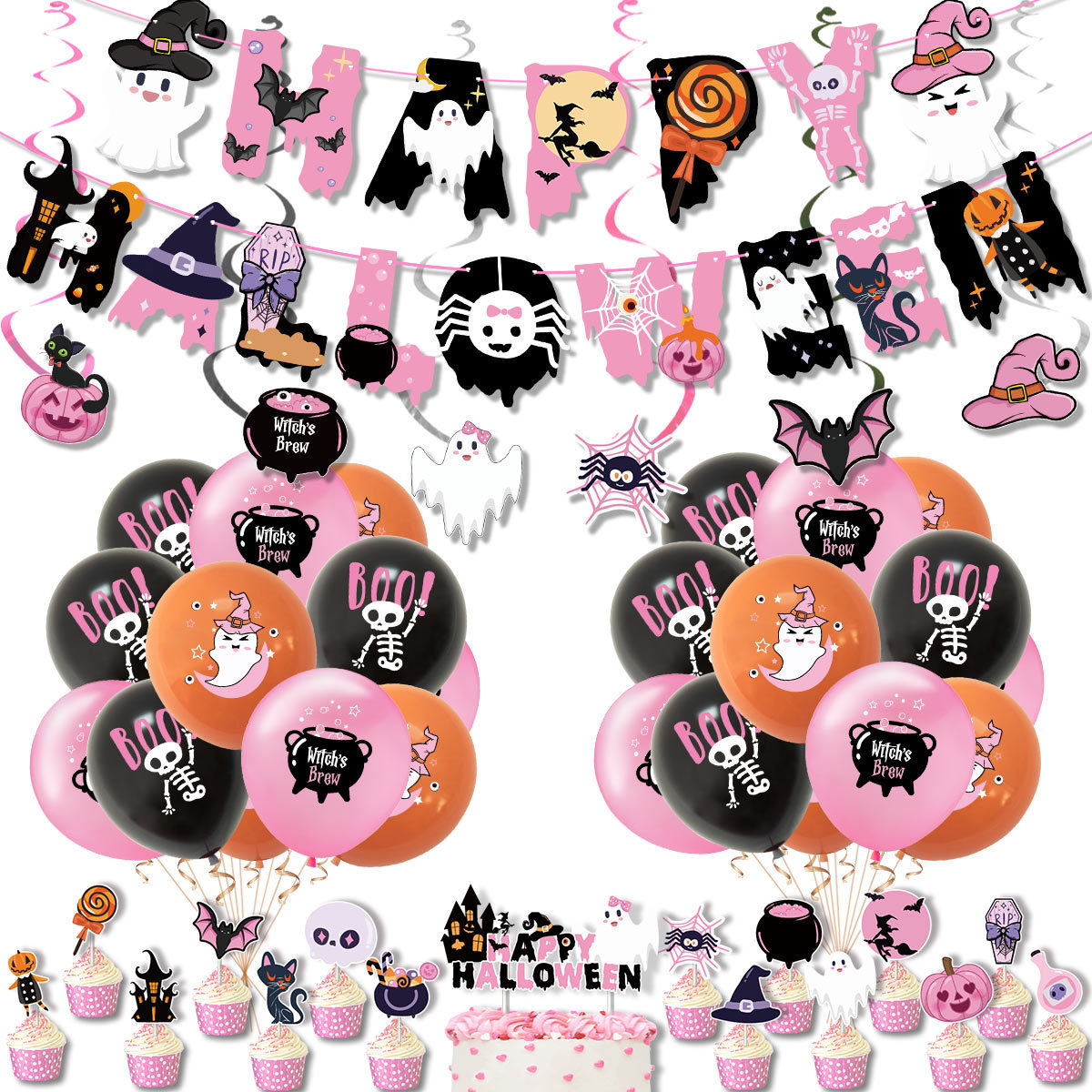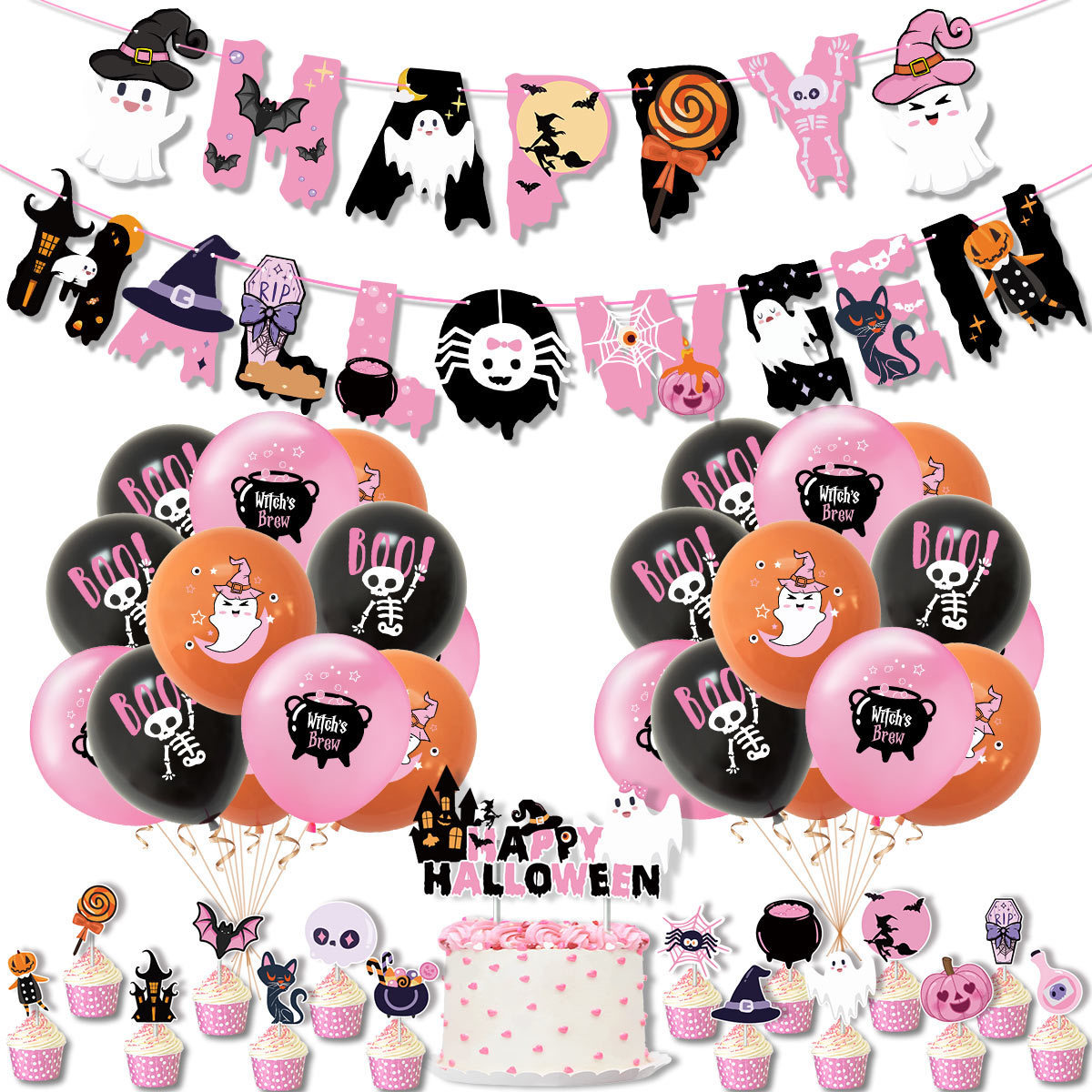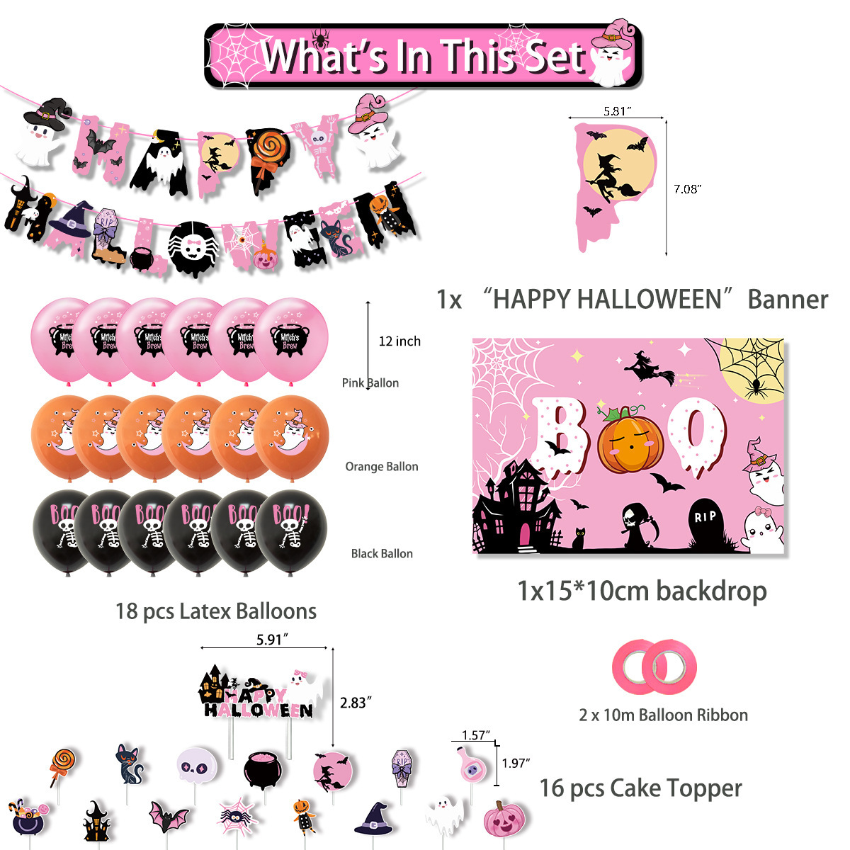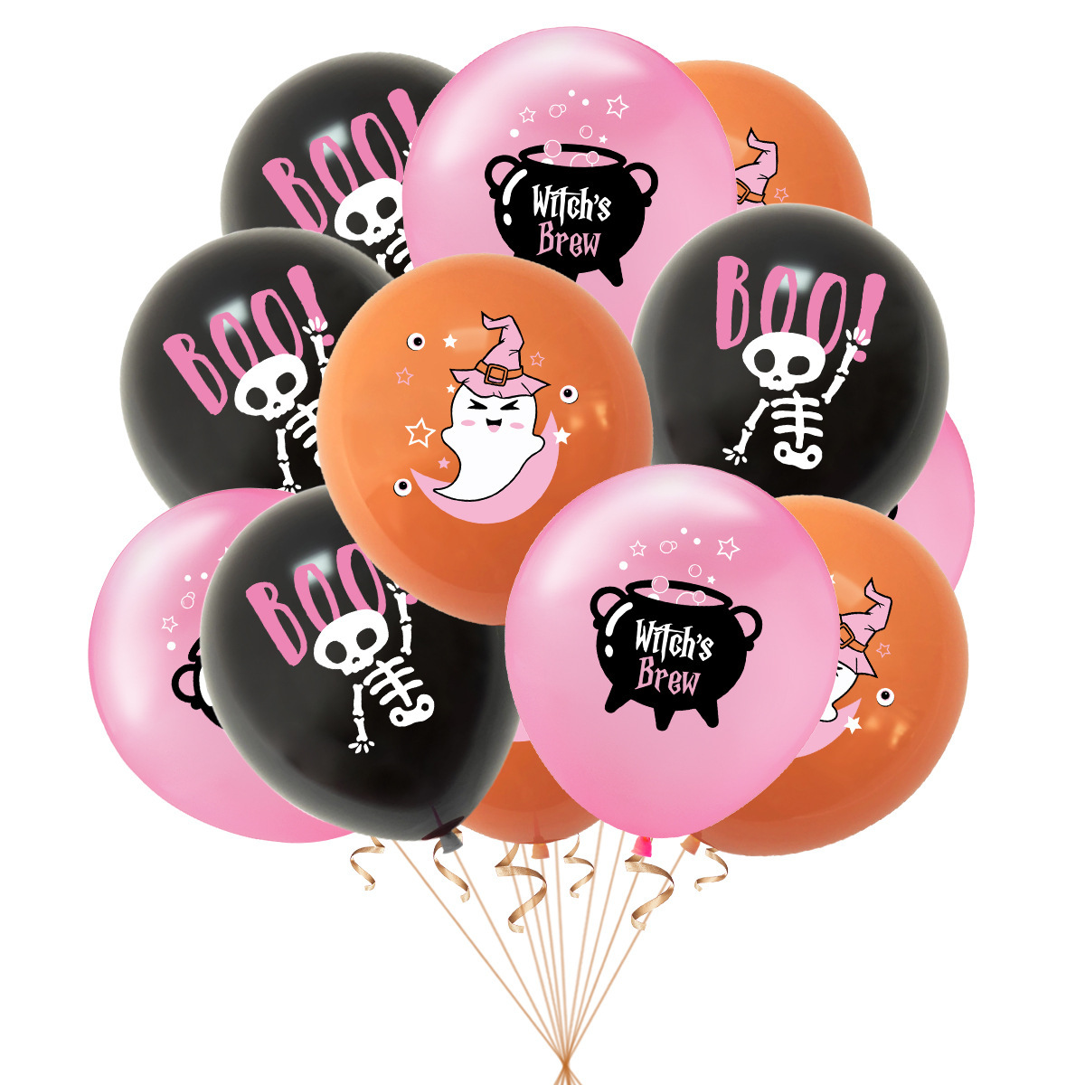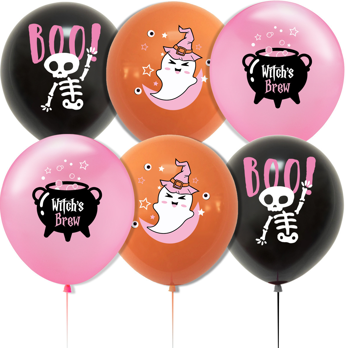 1套18个装12英寸乳胶气球套装(6粉色6黑色6橘色)