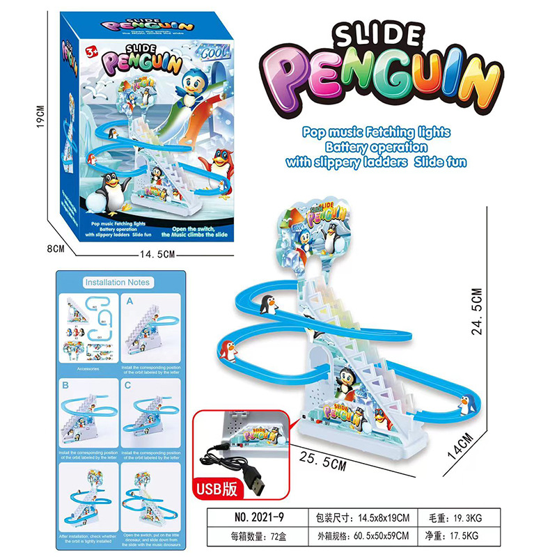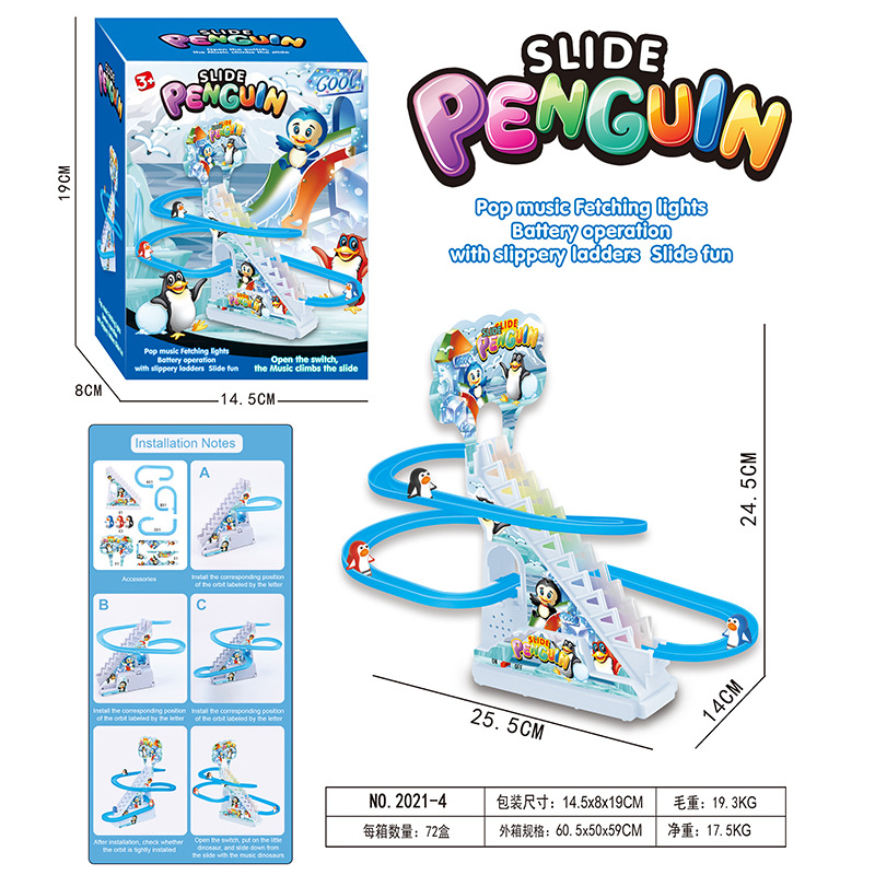 틱톡 동일 모델 작은 펭귄 교육용 장난감 3~6세 어린이용 트랙카 전동 계단 오르기 장난감 해외 전용