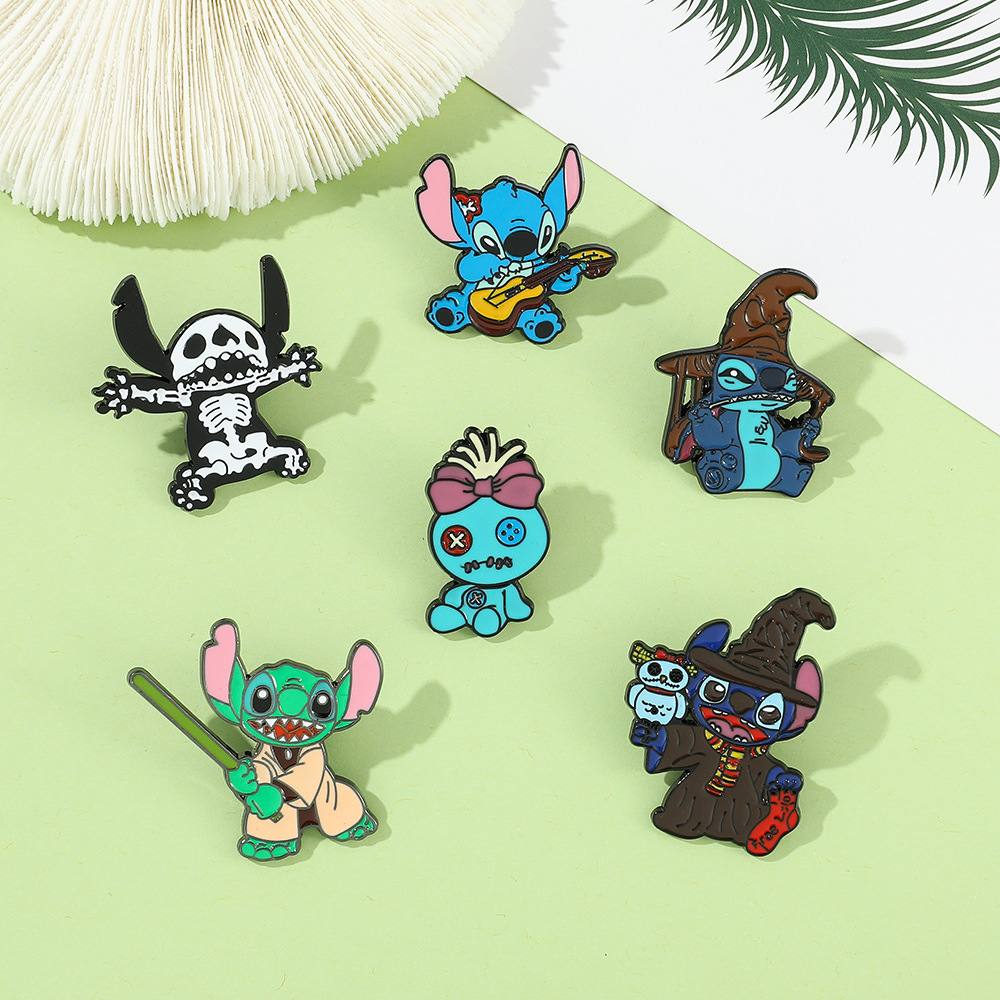 100가지 클래식 스티치 메탈 배지 스타워즈 스티치 요다 마스터 합금 브로치 도매스토어 가기