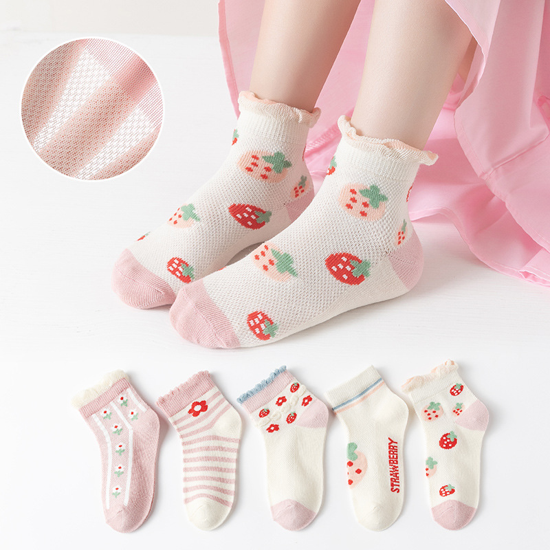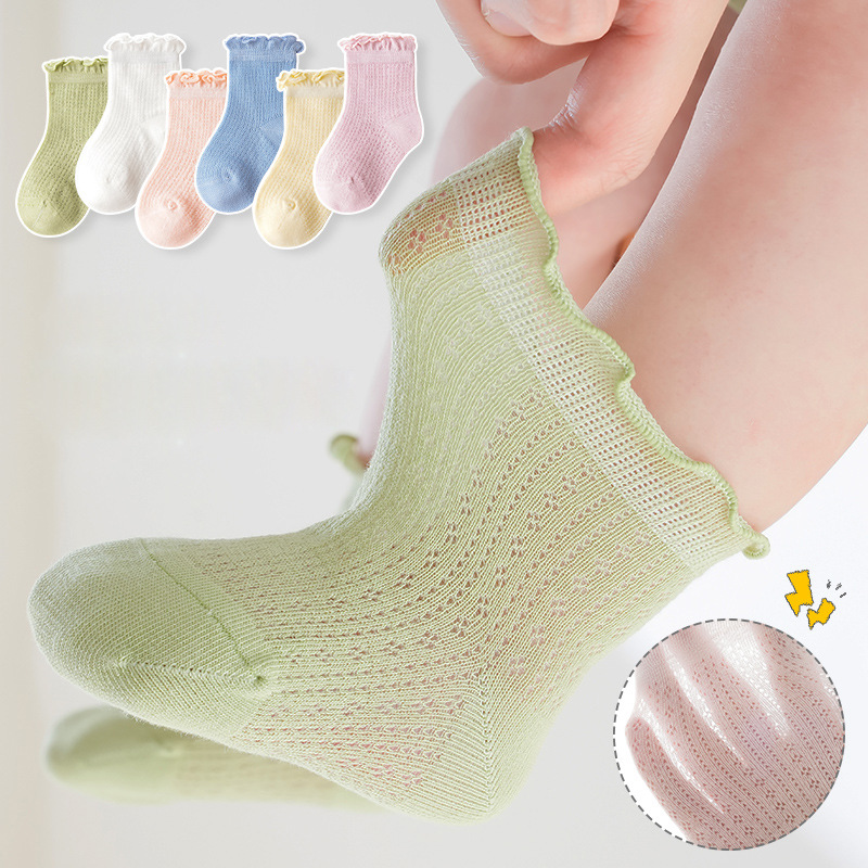 23 새로운 어린이 양말 봄과 여름 빗질면 메쉬 얇은 아기 소녀 귀여운 레이스 공주 짧은 튜브 양말