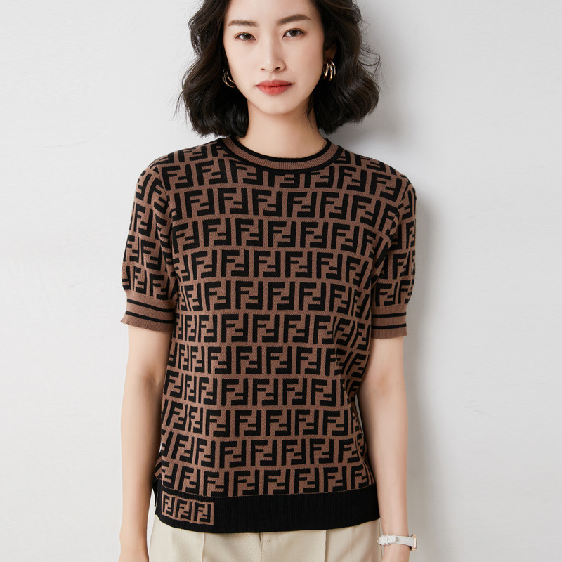 여성 2024 신작 레터 반팔 티셔츠 라운드 넥 자카드 바닥 스웨터 한국 스타일 슬림 반소매