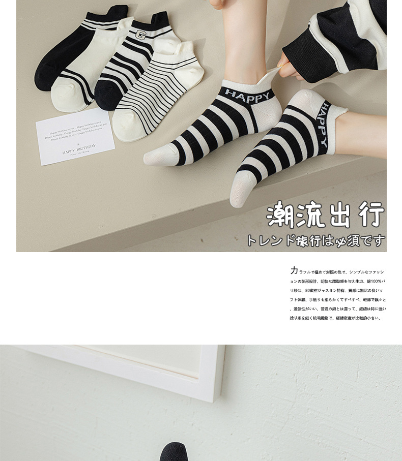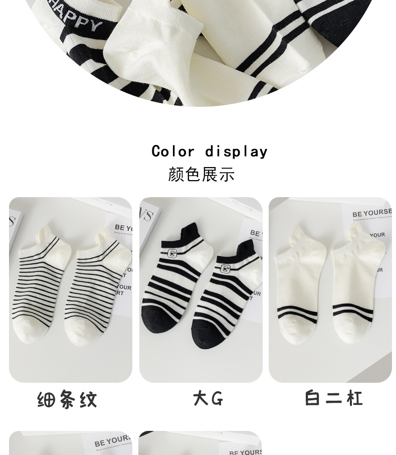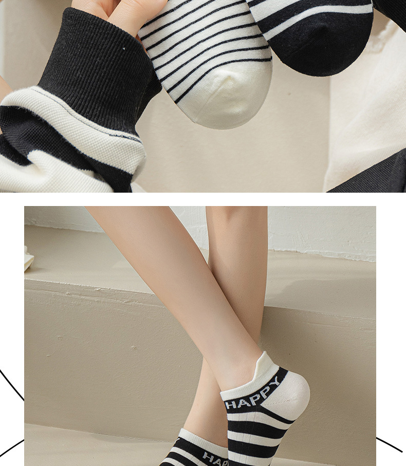 흑인과 백인 줄무늬 양말 여자의 짧은 양말 한국 일본 스타일 봄과 여름 면 바닥 얇은 낮은 탑 보트 양말 유행 땀 흡수스토어 가기