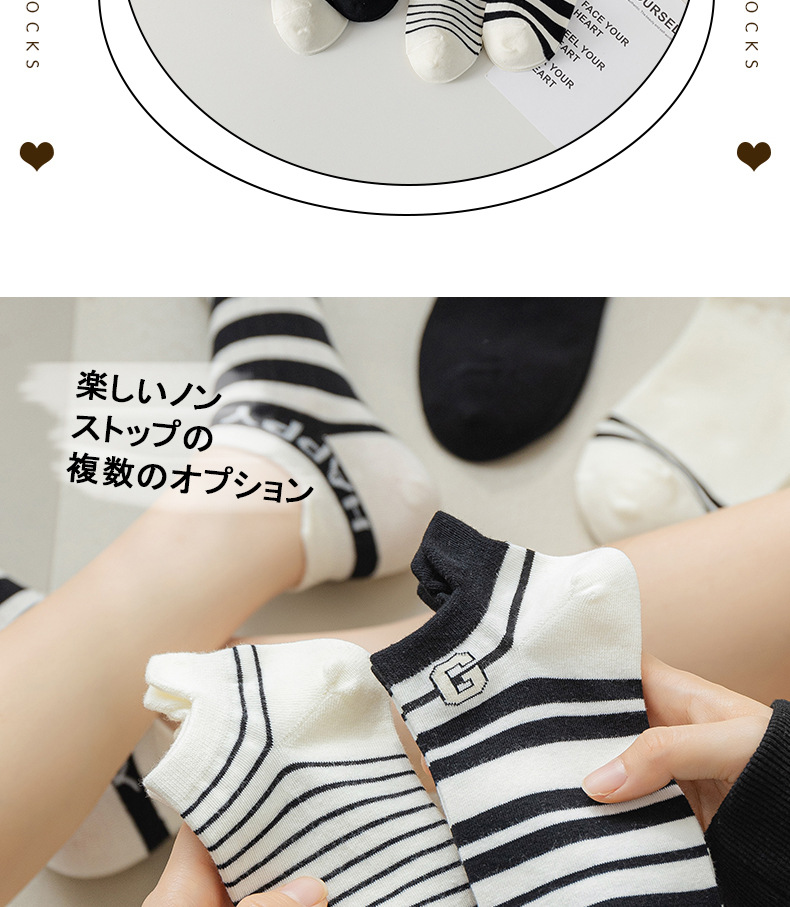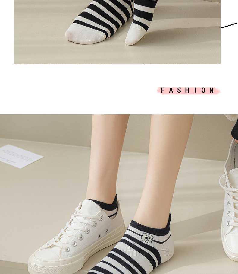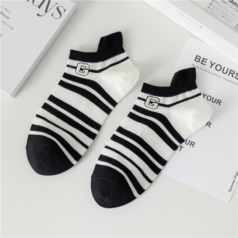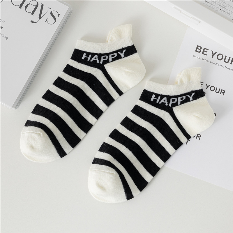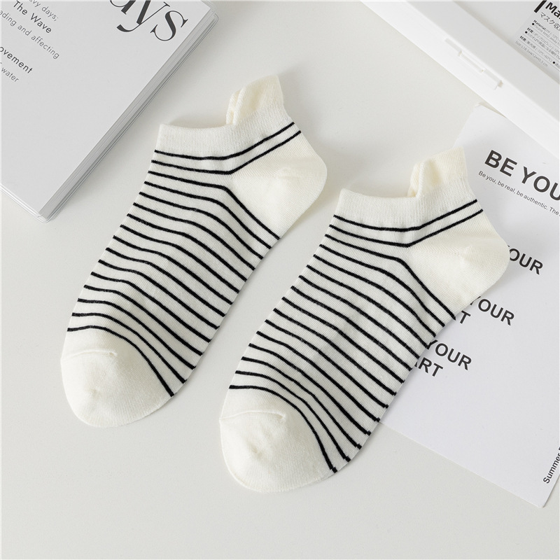 흑인과 백인 줄무늬 양말 여자의 짧은 양말 한국 일본 스타일 봄과 여름 면 바닥 얇은 낮은 탑 보트 양말 유행 땀 흡수