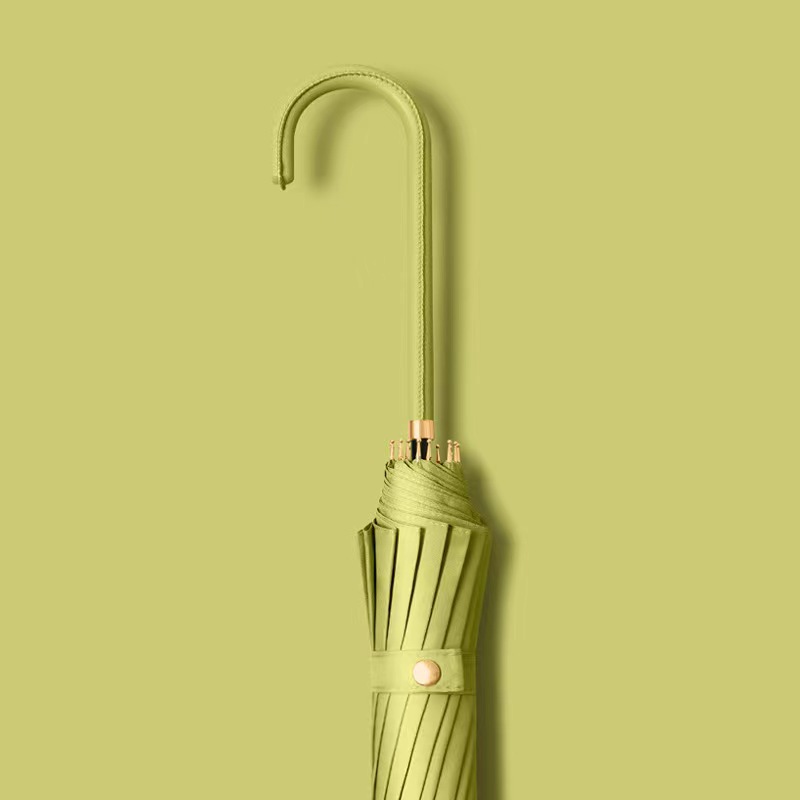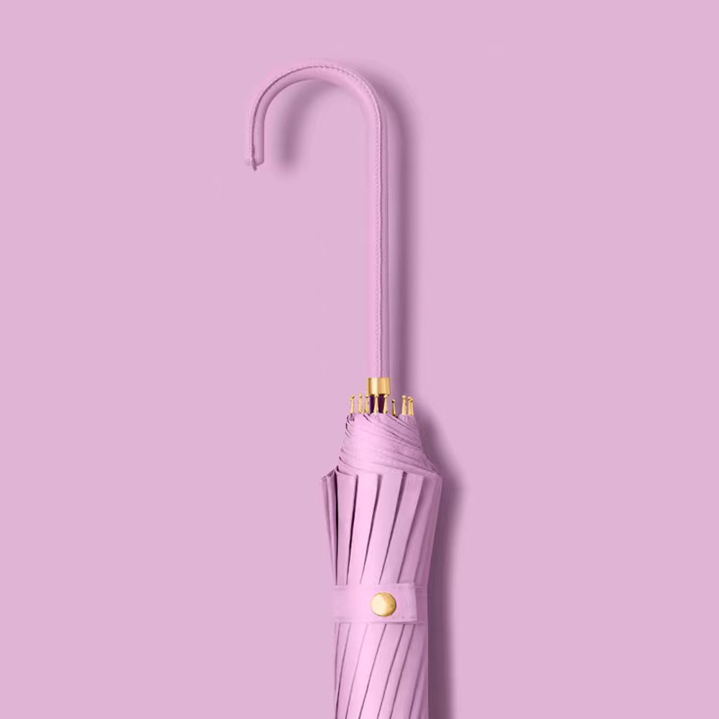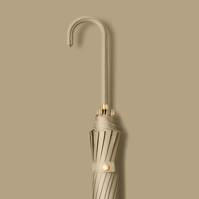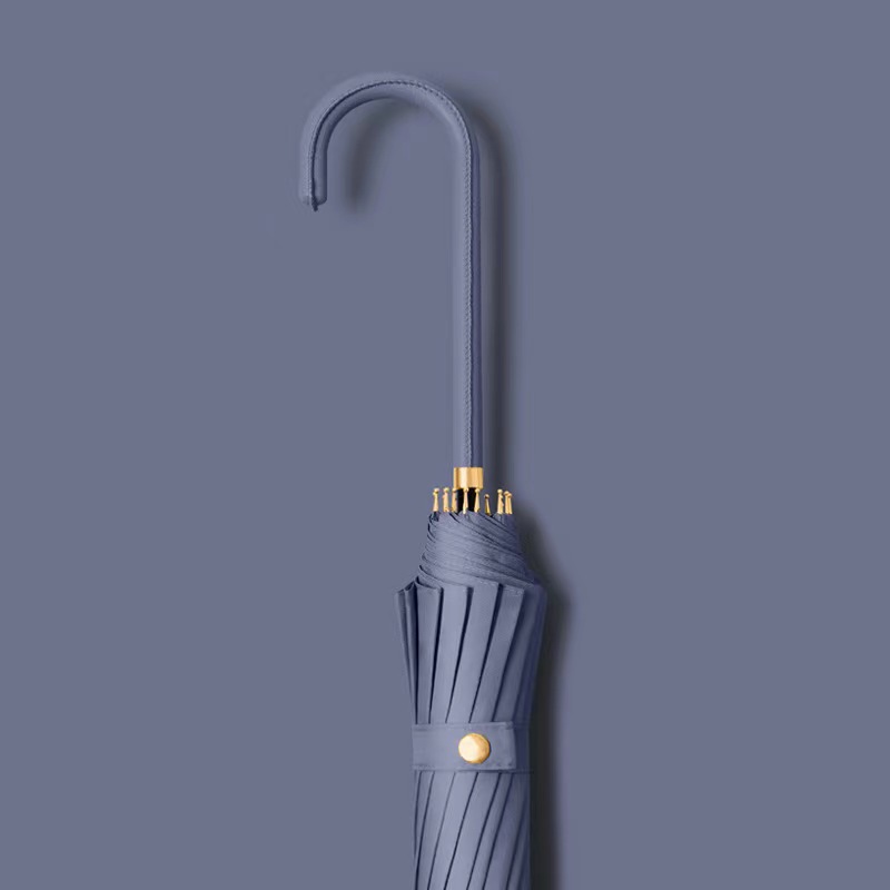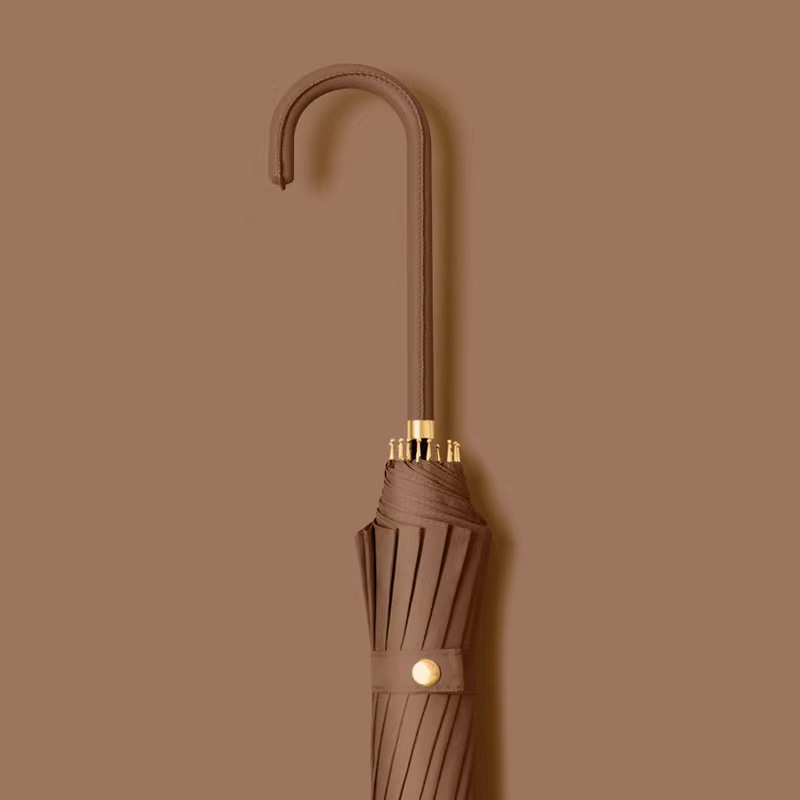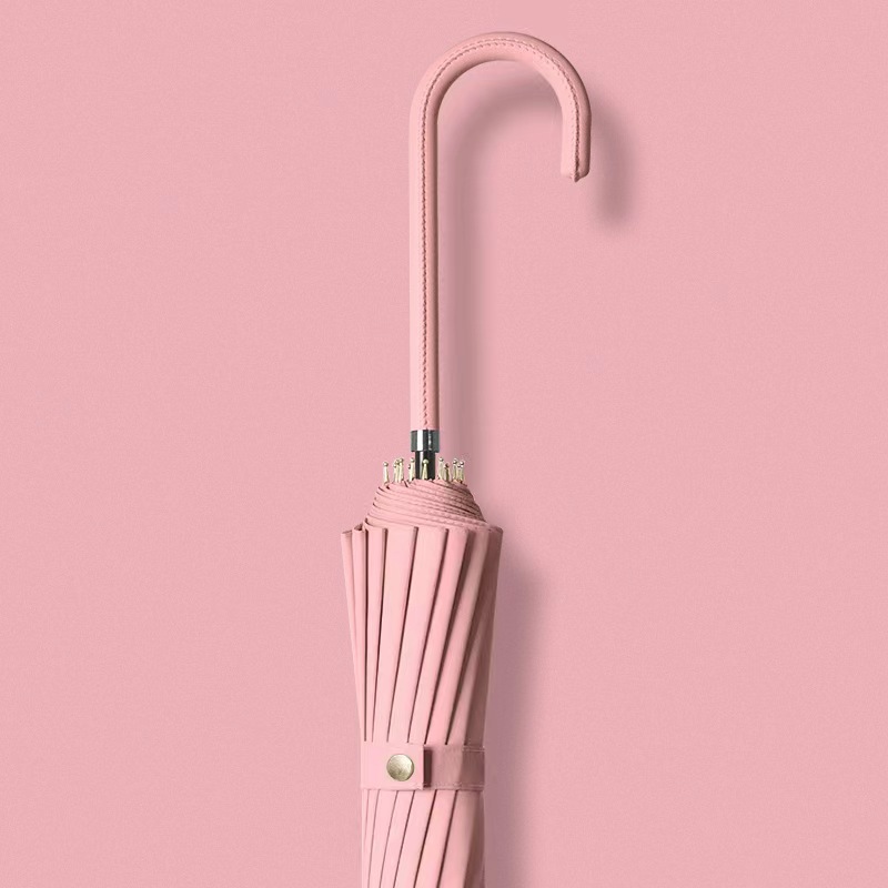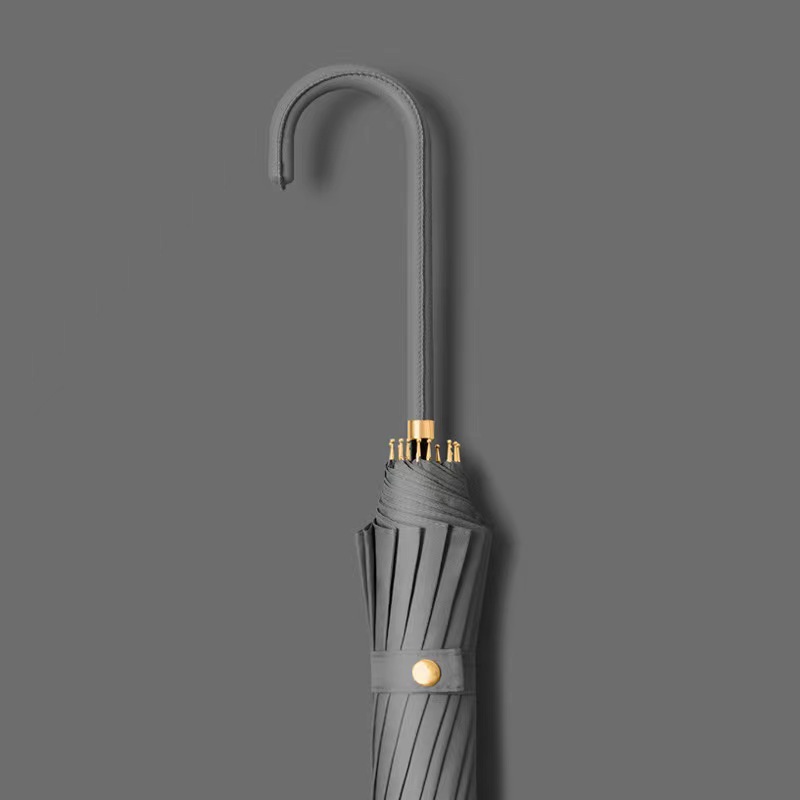 가죽 손잡이 곡선 자동 스트레이트 로드 긴 손잡이 우산 일본과 한국의 이중 고귀한 비 이중 사용 선물 광고 우산