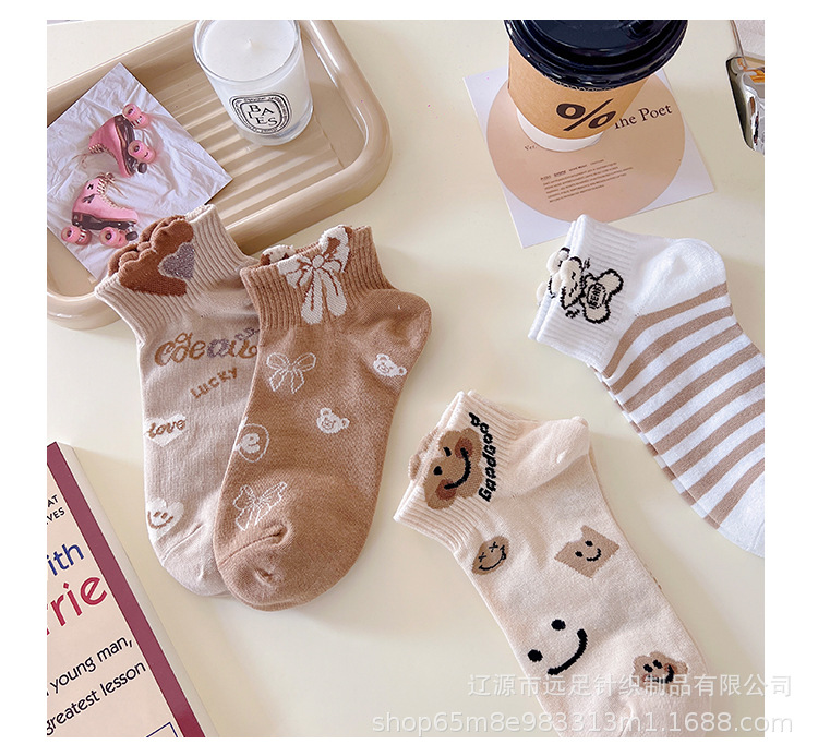 한국식 입체 만화 양말 여성용 짧은 양말 로우 탑 얕은 입 봄과 여름 얇은 달콤한 일본 학생 스포츠 면 양말