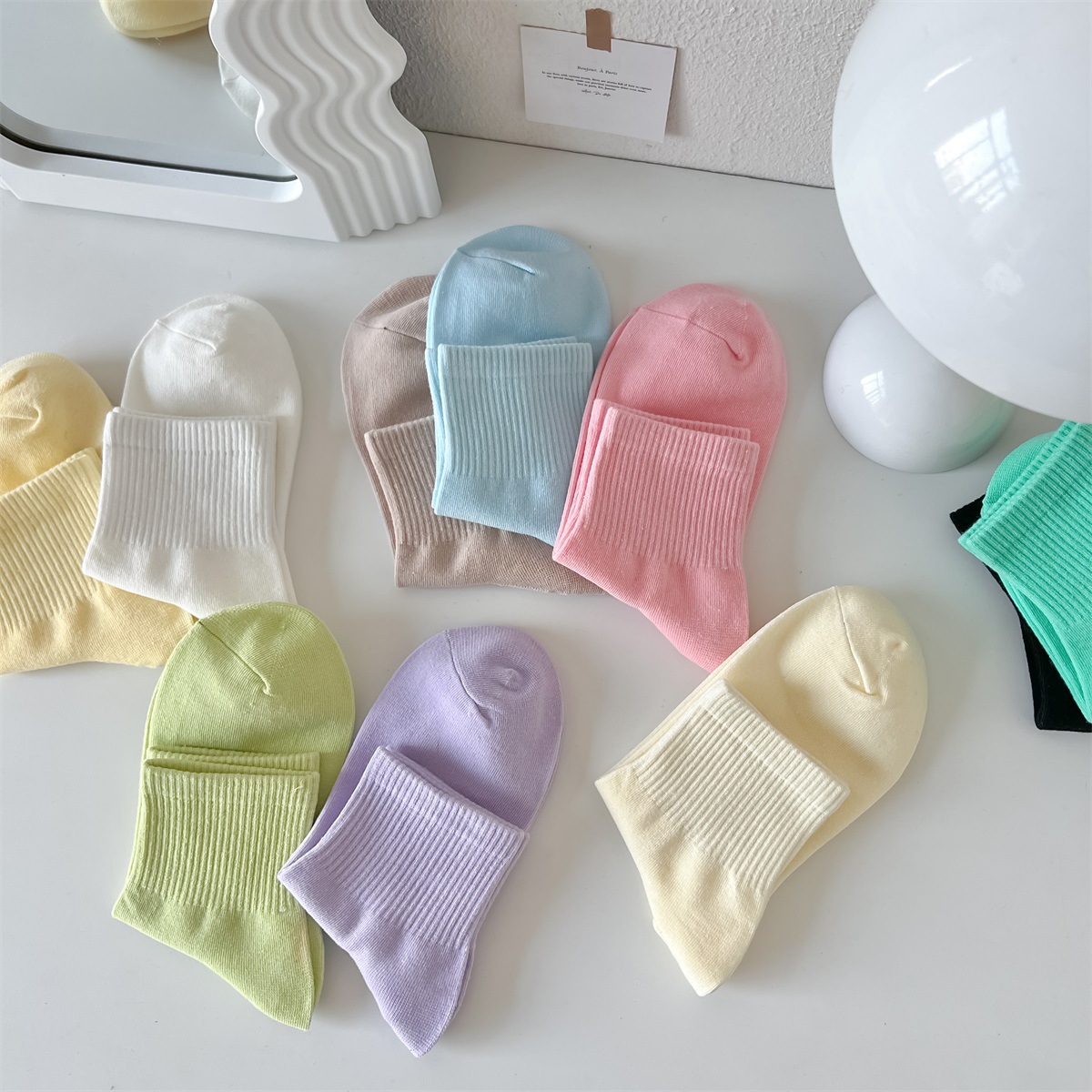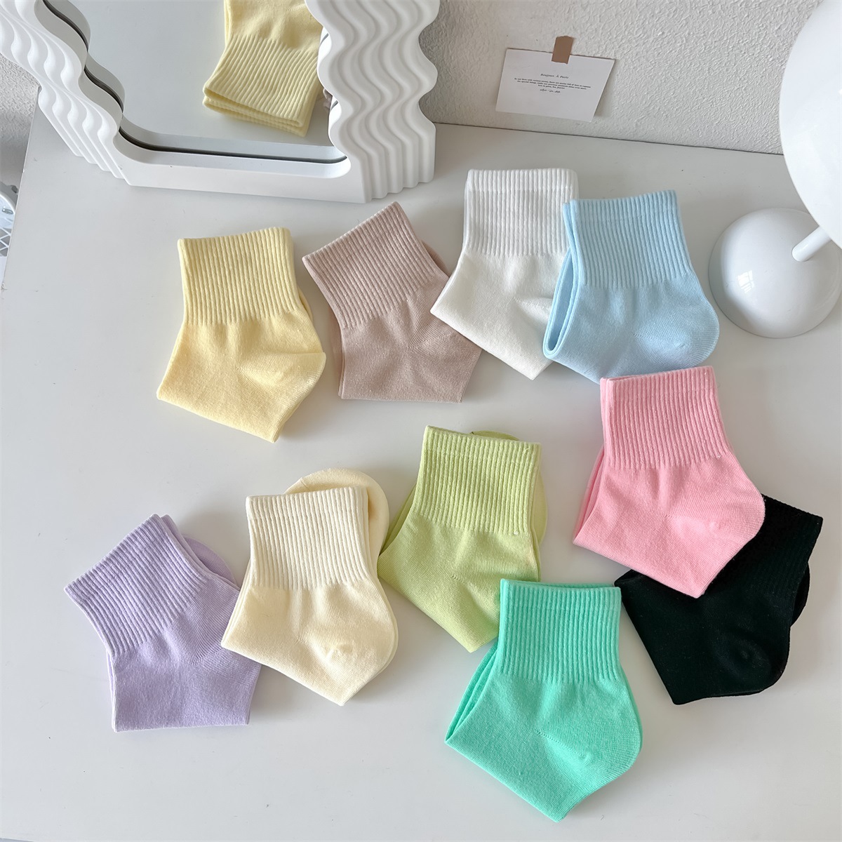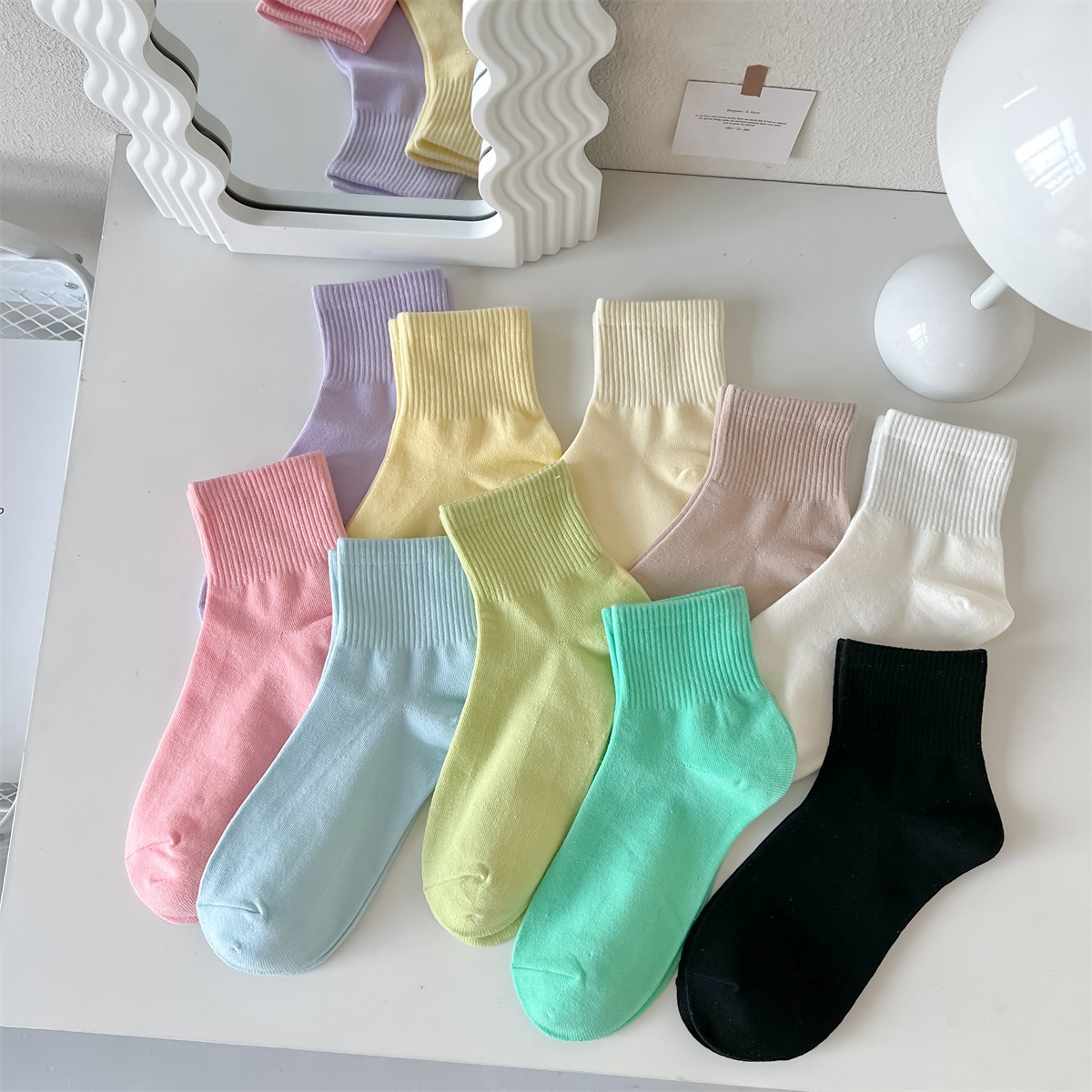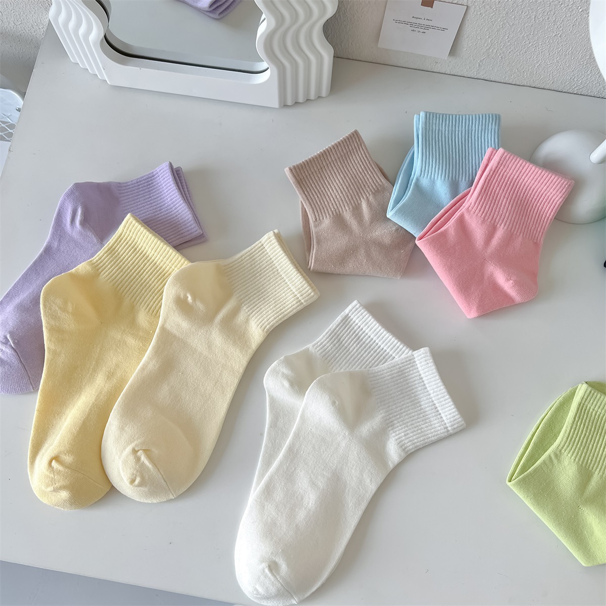 봄과 여름 양말 여성의 일본 크림 컬러 짧은 양말 캐주얼 다용도 캔디 컬러 조수 양말 여름 얇은 짧은 양말 면화