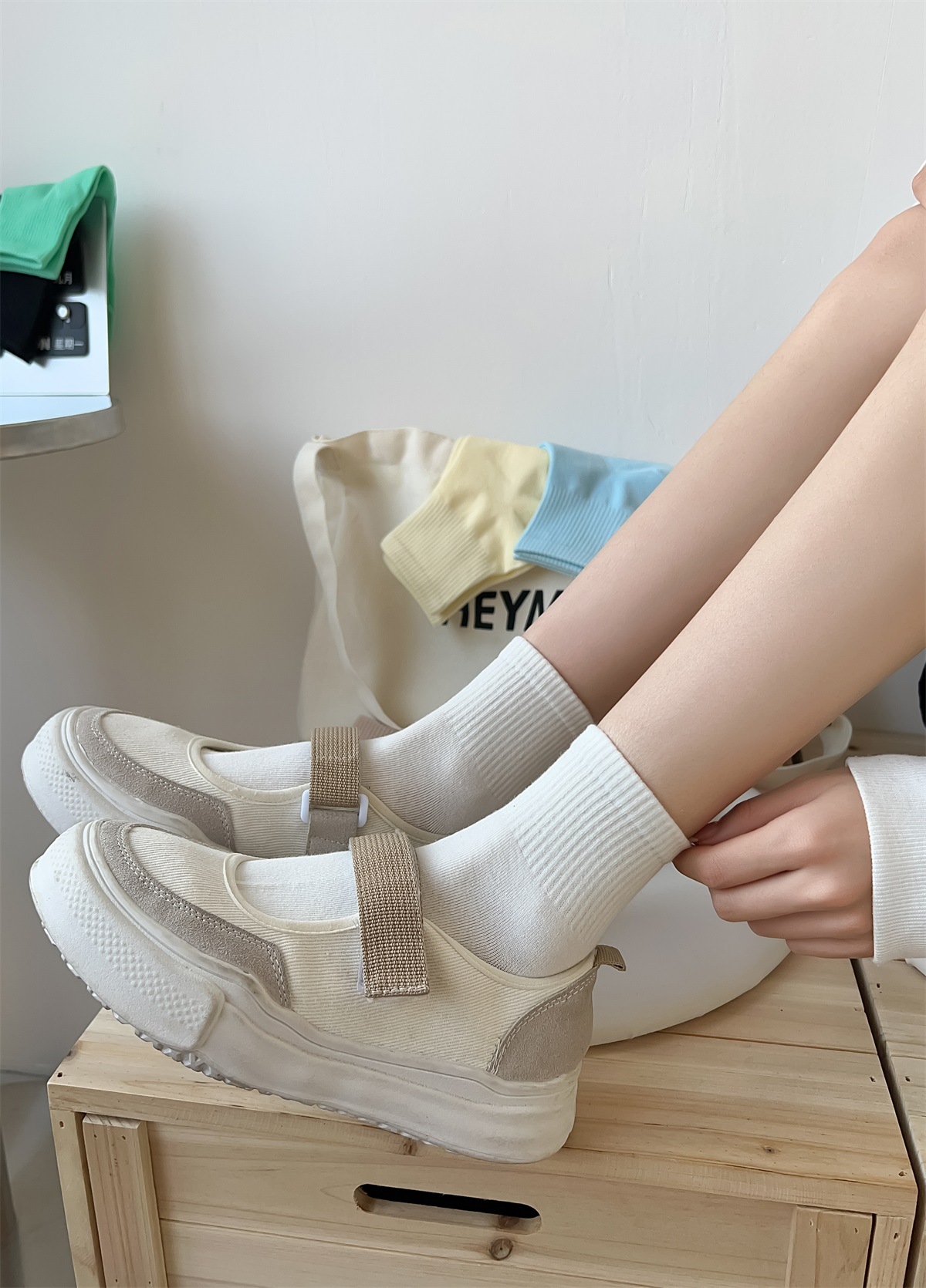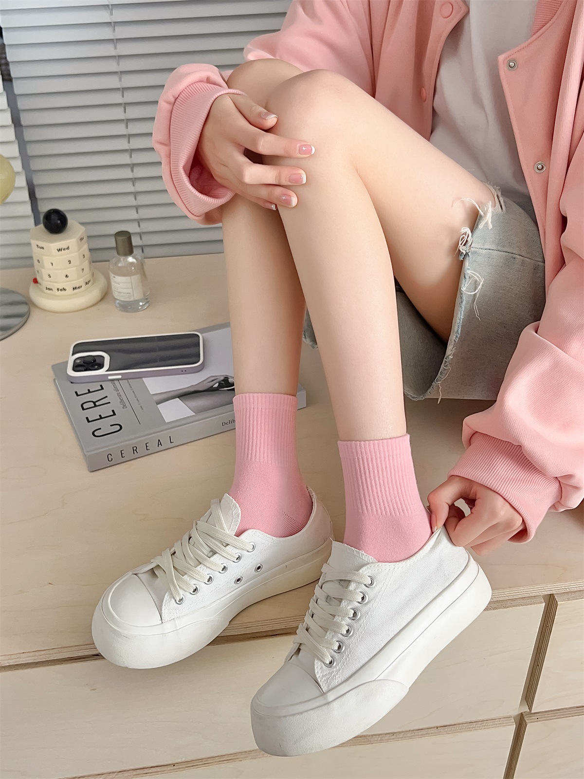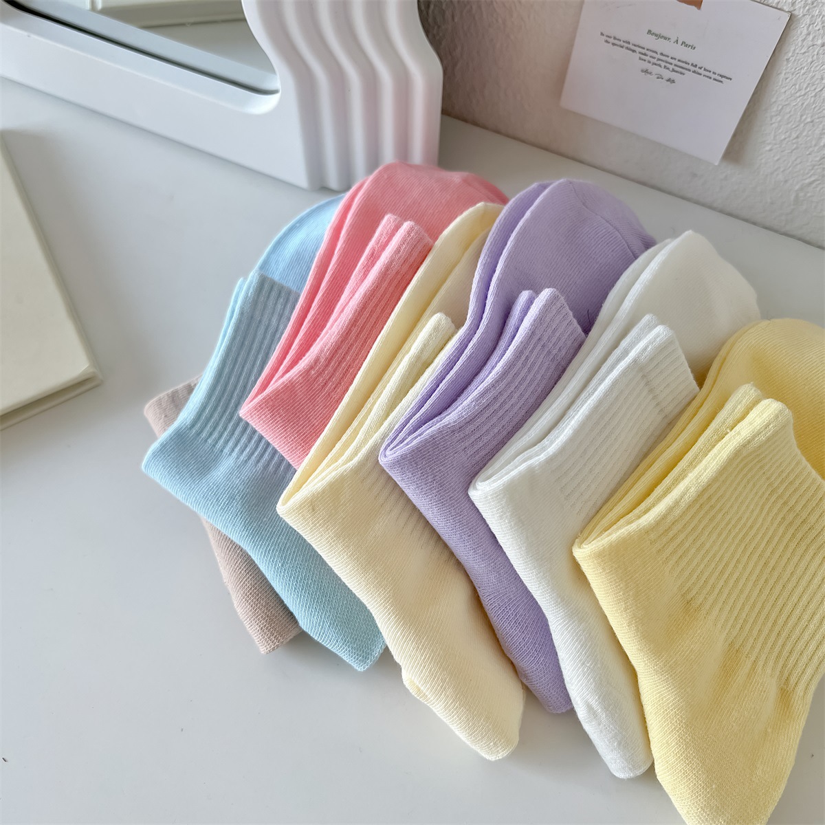 봄과 여름 양말 여성의 일본 크림 컬러 짧은 양말 캐주얼 다용도 캔디 컬러 조수 양말 여름 얇은 짧은 양말 면화스토어 가기