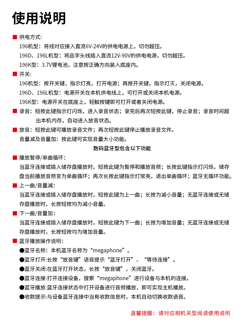 • 196A/136A는 배터리 클립 및 시가 라이터에 연결할 수 있습니다(50W 전력 12-24V 175S 녹음 및 통화 가능 Bluetooth U 디스크 AUX 소켓)