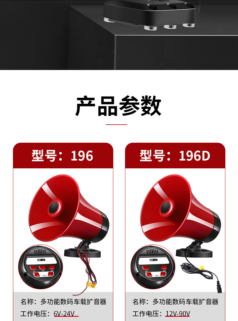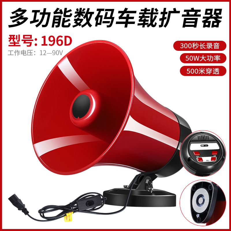 50W 고출력 12V 자동차 확성기 강력한 자기 다기능 홍보 확성기 멸치 동물 경적