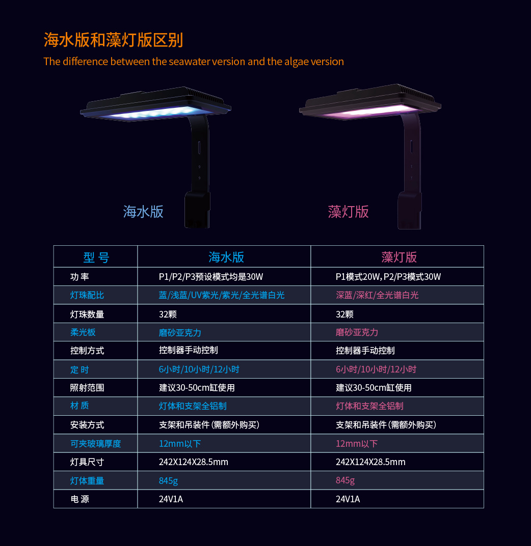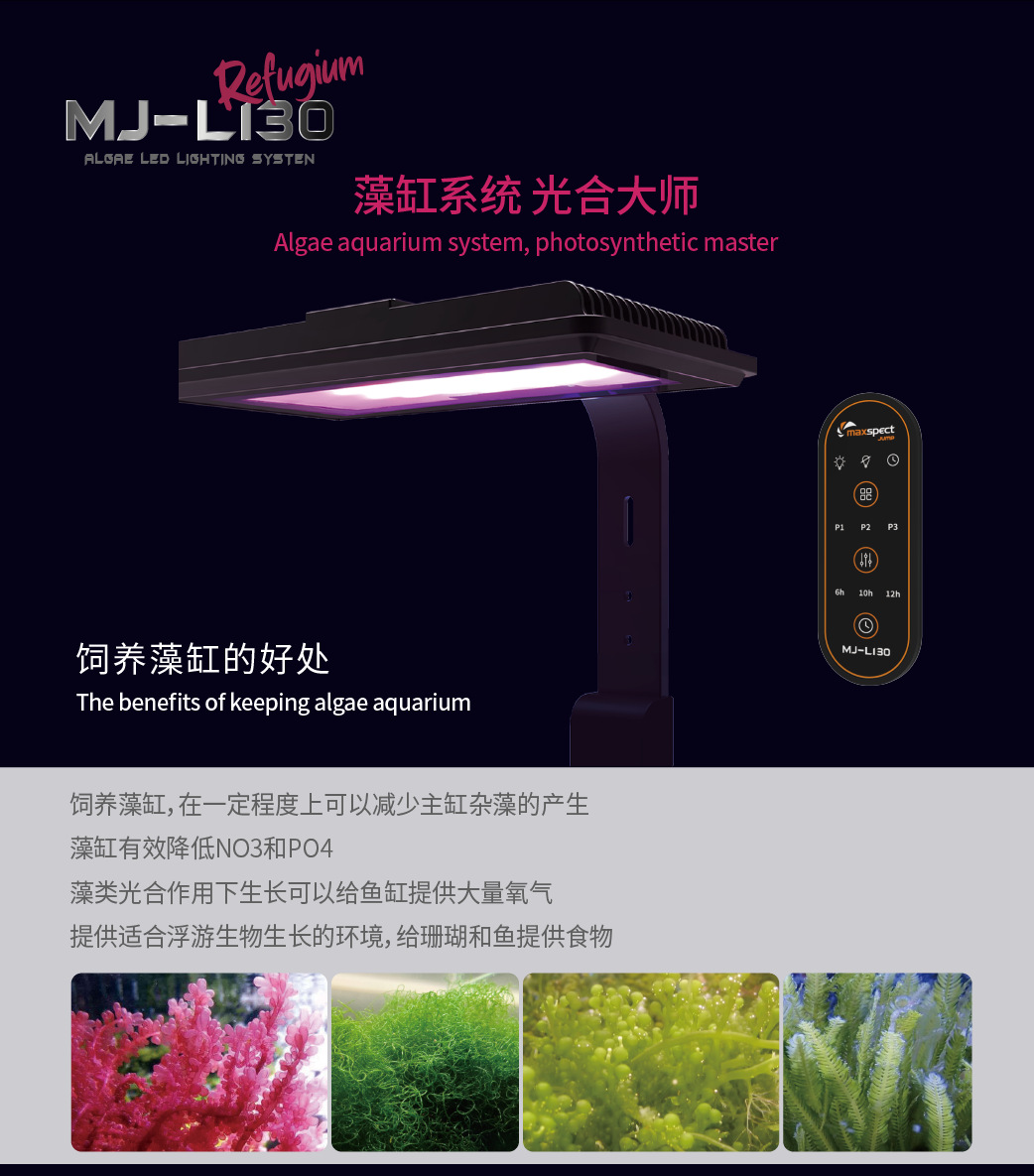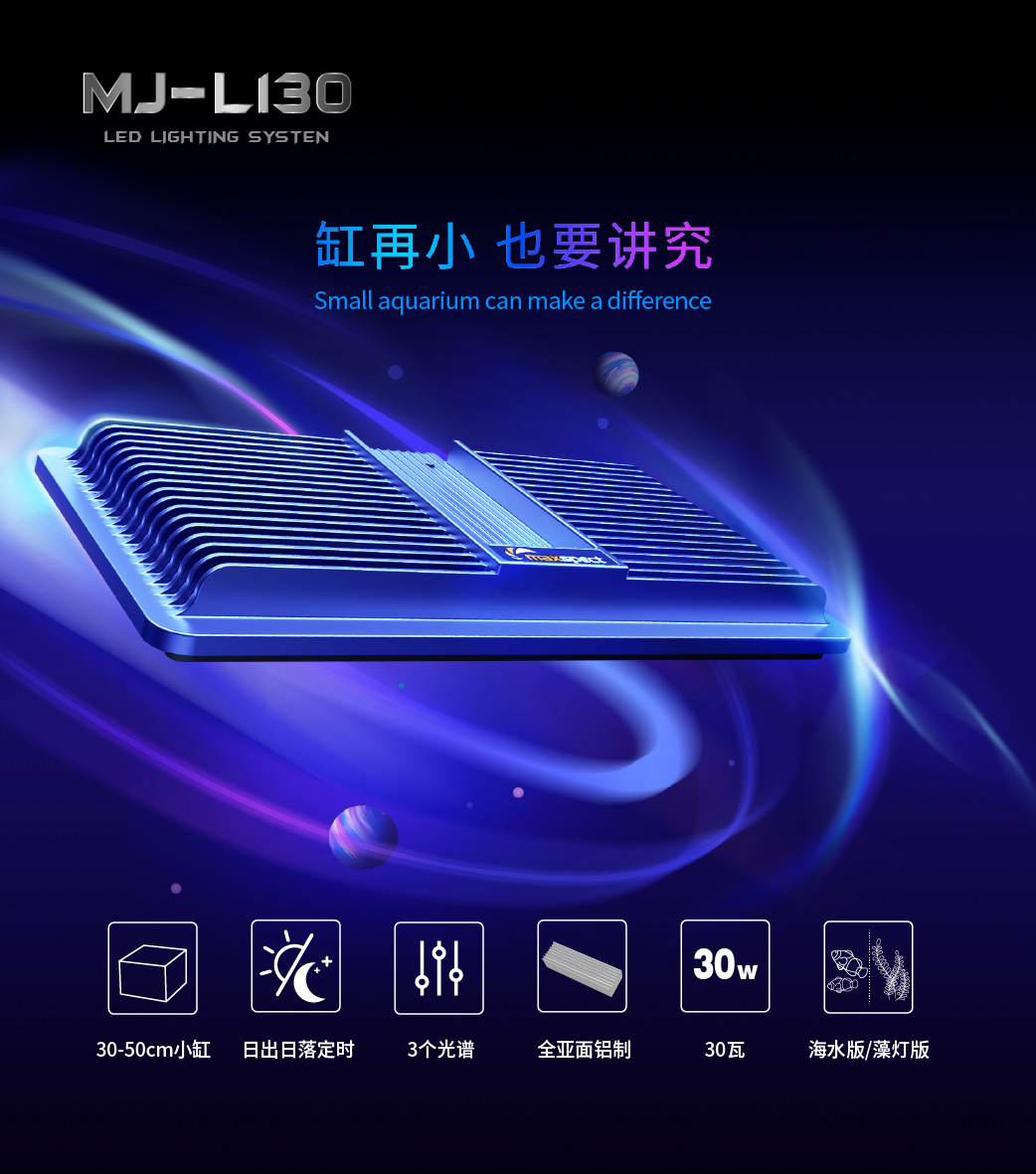 Maiguang의 새로운 Qihang MJ-L130 L130R LED 30W 해양 탱크 조명 조류 탱크 조명 전체 스펙트럼 타이밍 와이어 제어