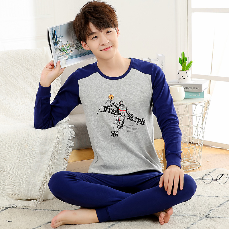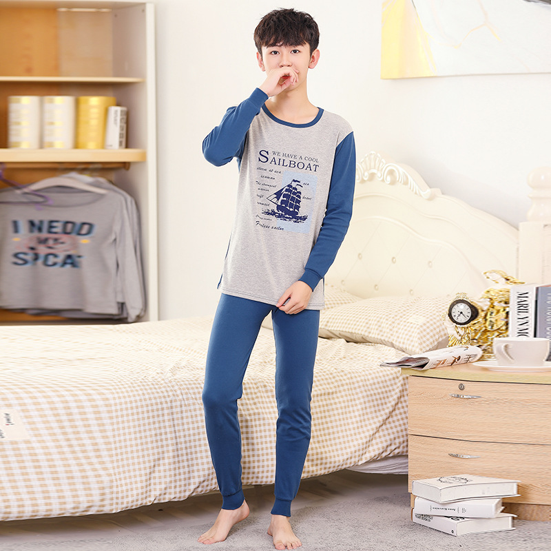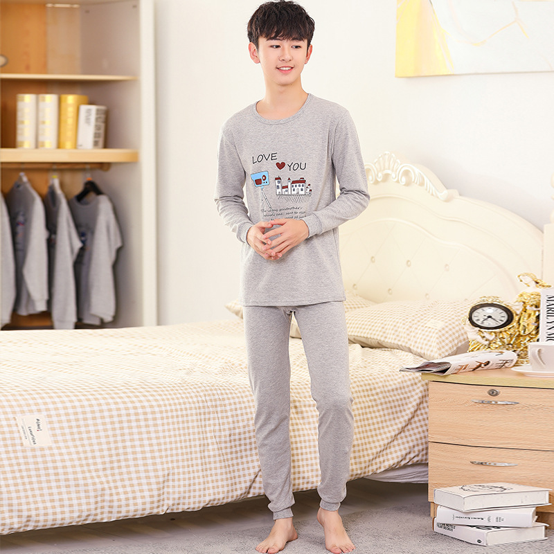 가을 옷 남자의 이너웨어 면 바닥 가을 바지 면 따뜻한 탑 싱글 피스 얇은 바지 청소년 속옷 세트