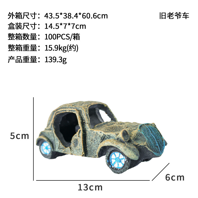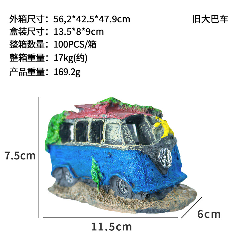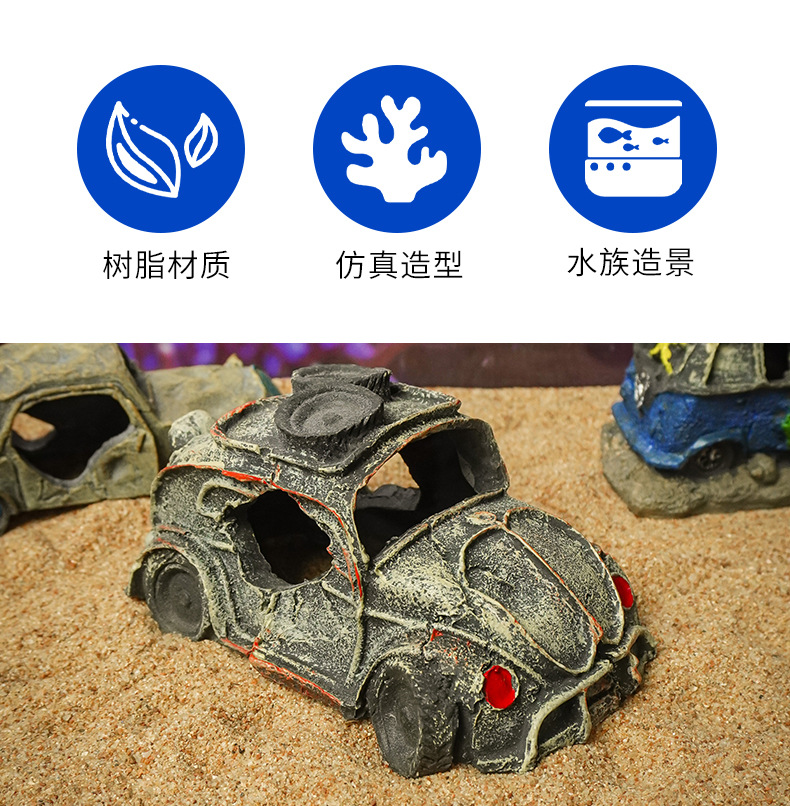 오래된 수지 트럭, 비틀즈, 클래식카, 버스, 물고기와 새우가 숨는 집, 나무 구멍, 수족관, 침몰선, 복고풍 인공산