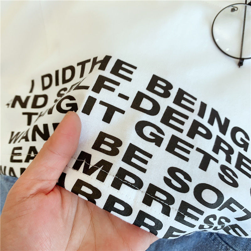 여름 소녀 세트 아기 세련된 어린이의 성격 유행 브랜드 한국 반바지 편지 등이없는 티셔츠 데님 반바지