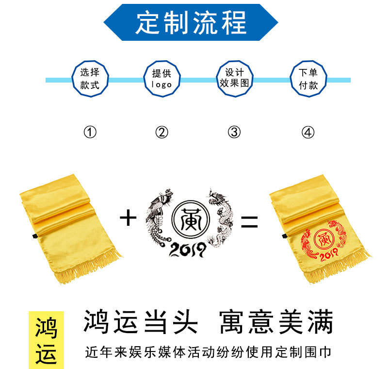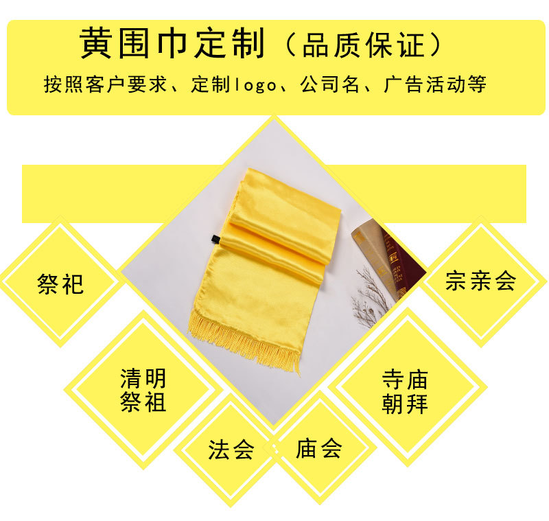 조상 제사용 황색 스카프 맞춤 로고 자수 인쇄 사찰 행사 선물 실크 스카프 도매