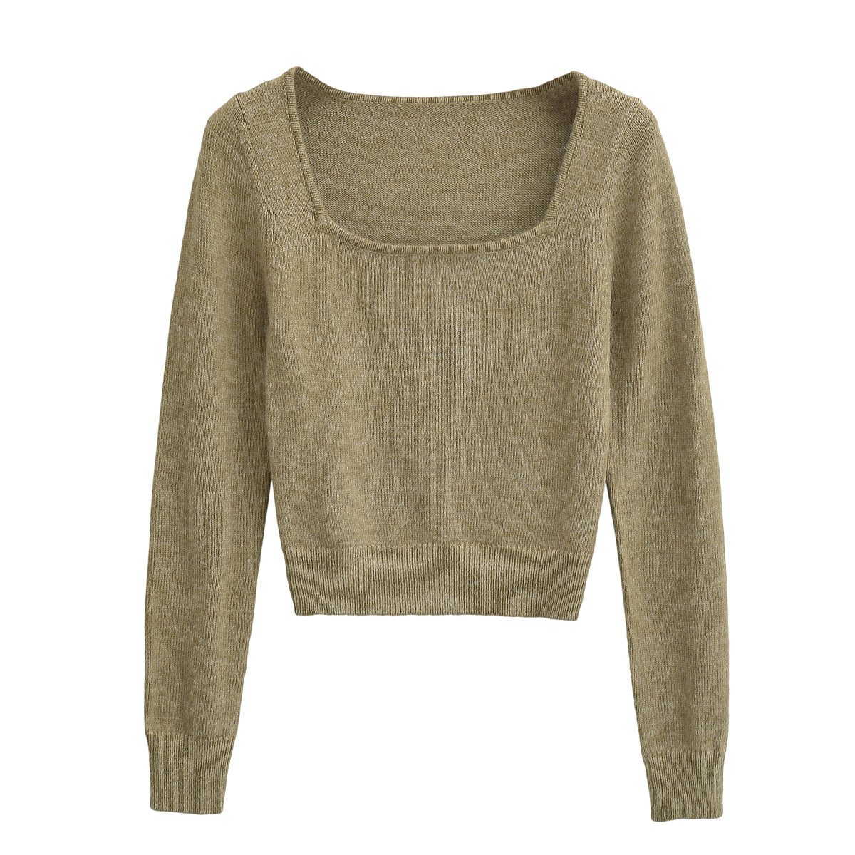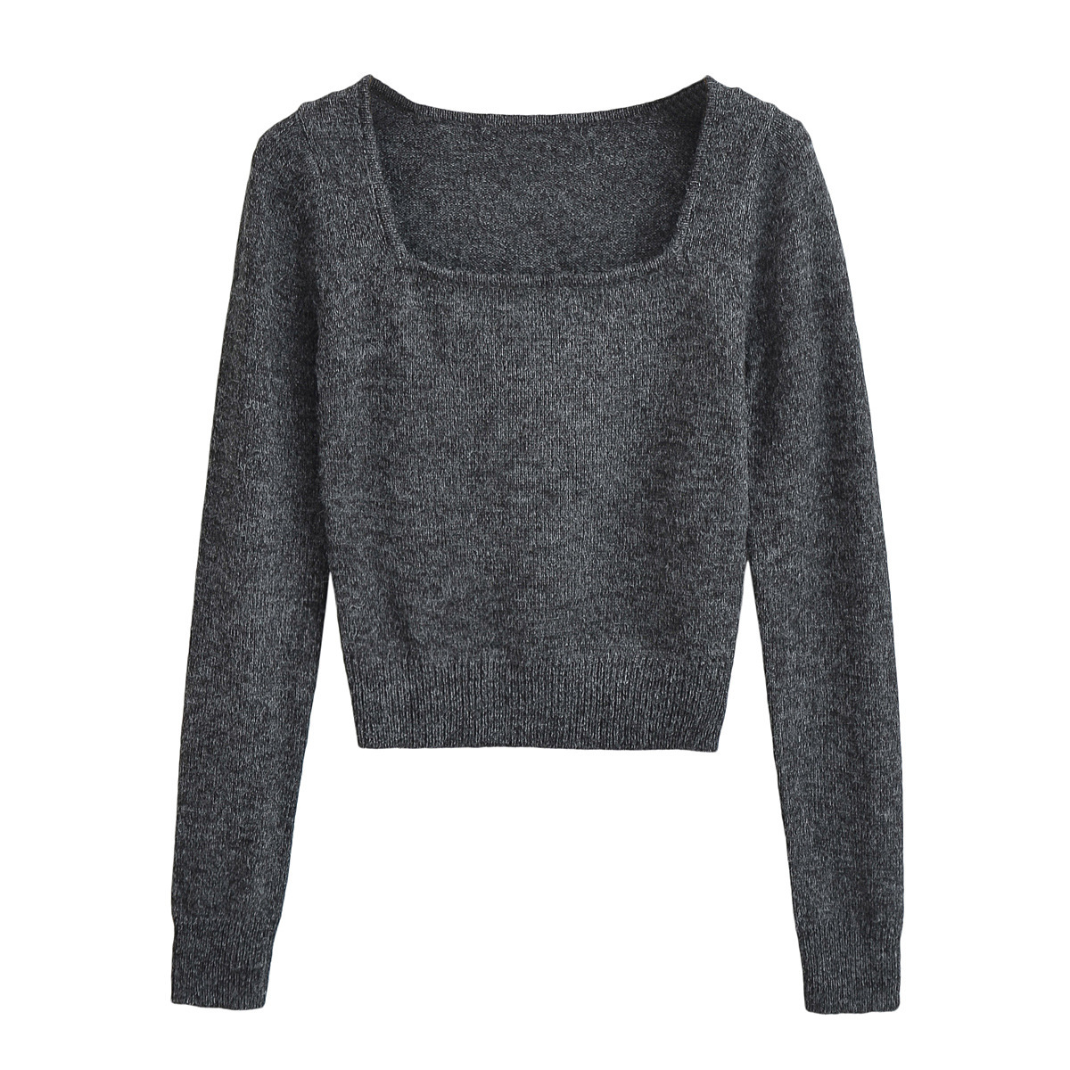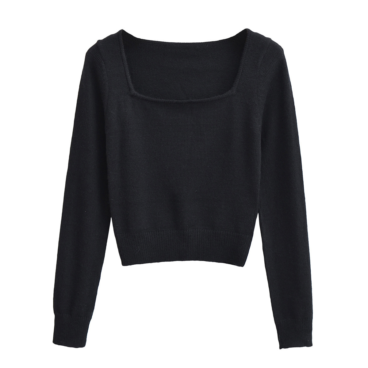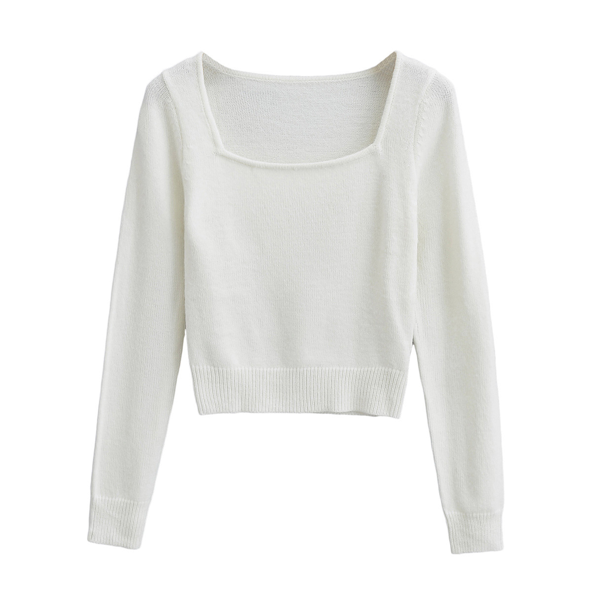 빈티지 스퀘어 칼라 니트 베이스 셔츠 여성용 2023 새로운 프랑스 스타일 순수한 욕망 섹시한 쇄골 슬림 짧은 탑스토어 가기