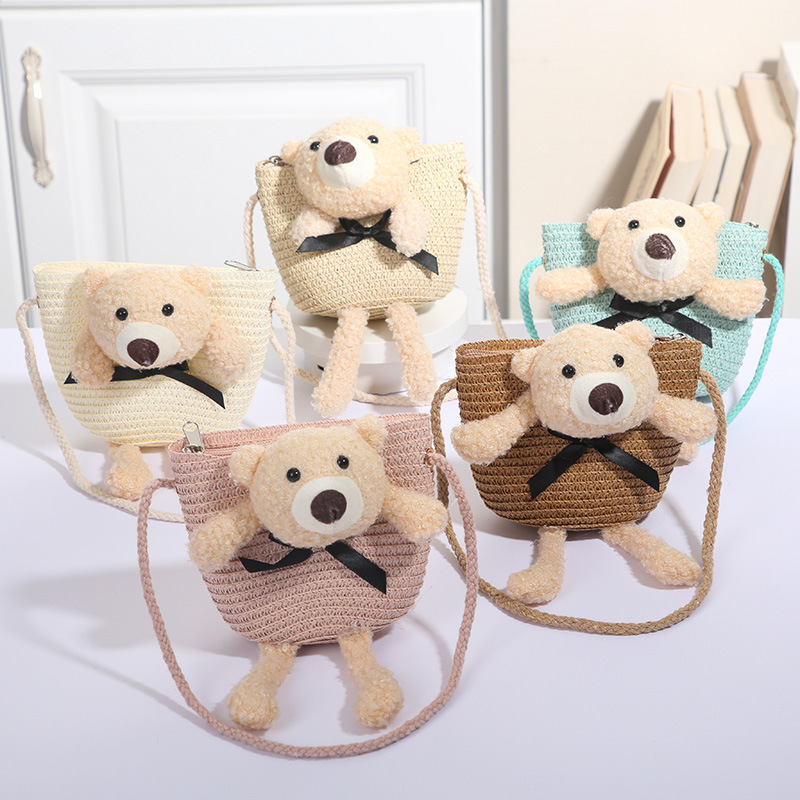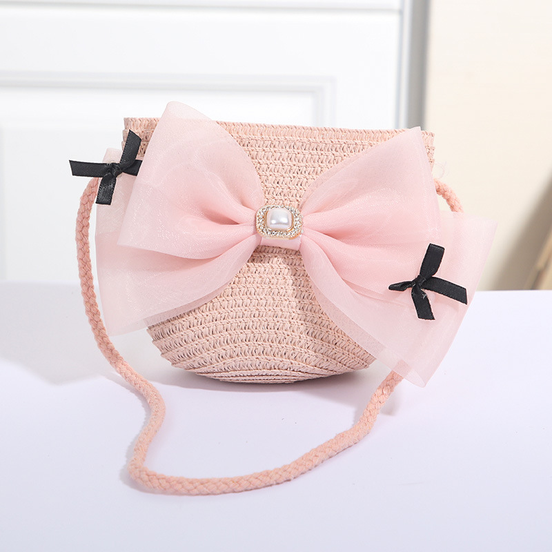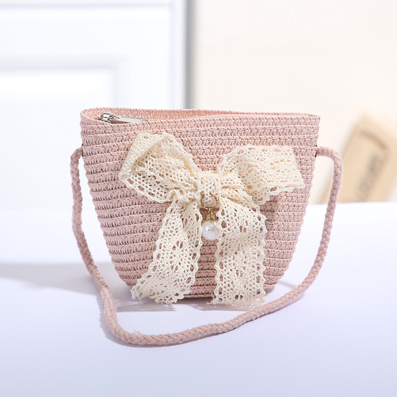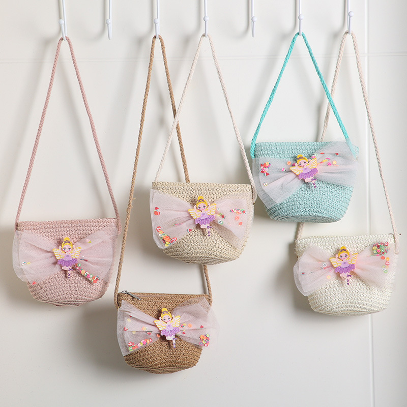 달콤한 메쉬 꽃 어린이 미니 밀짚 가방 외국 스타일 여행 야외 놀이 동전 지갑 대각선 가방 제조 업체스토어 가기