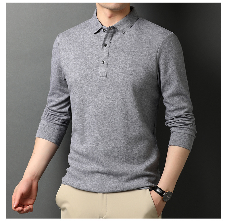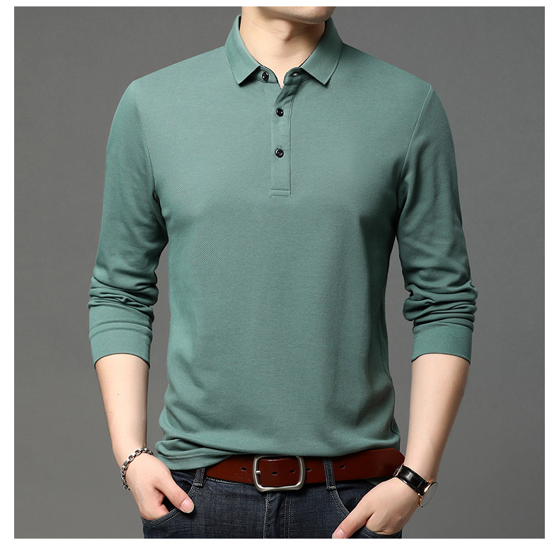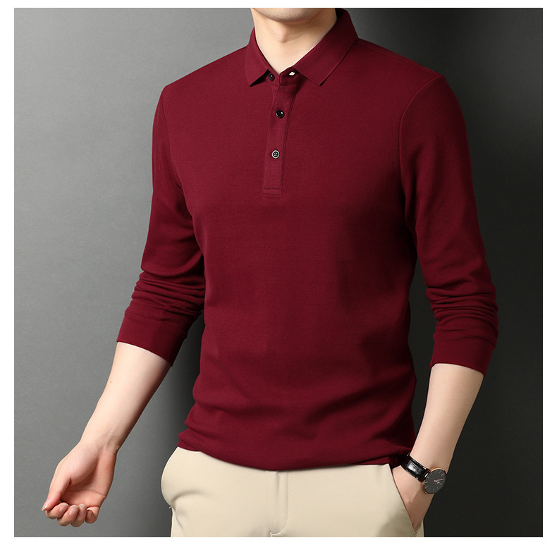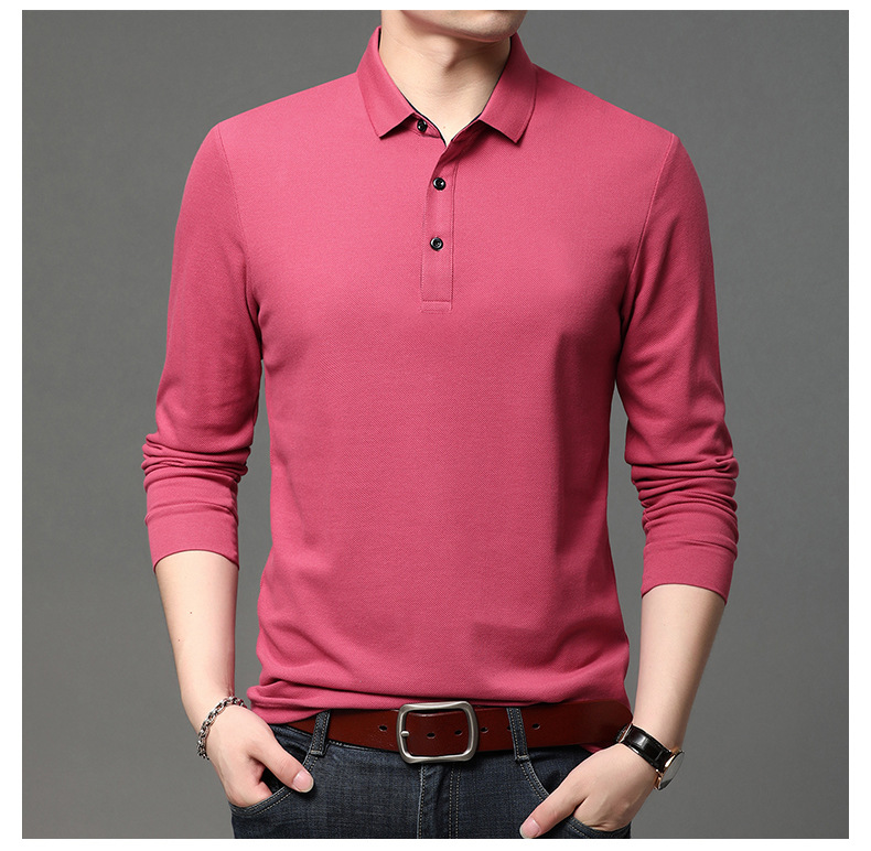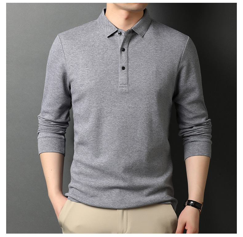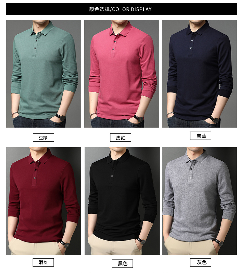 2025 긴팔 티셔츠 남성용 라펠 루즈하고 다재다능한 봄, 가을 얇은 탑 아빠 솔리드 컬러 라펠 티셔츠 남성용 기본 스타일