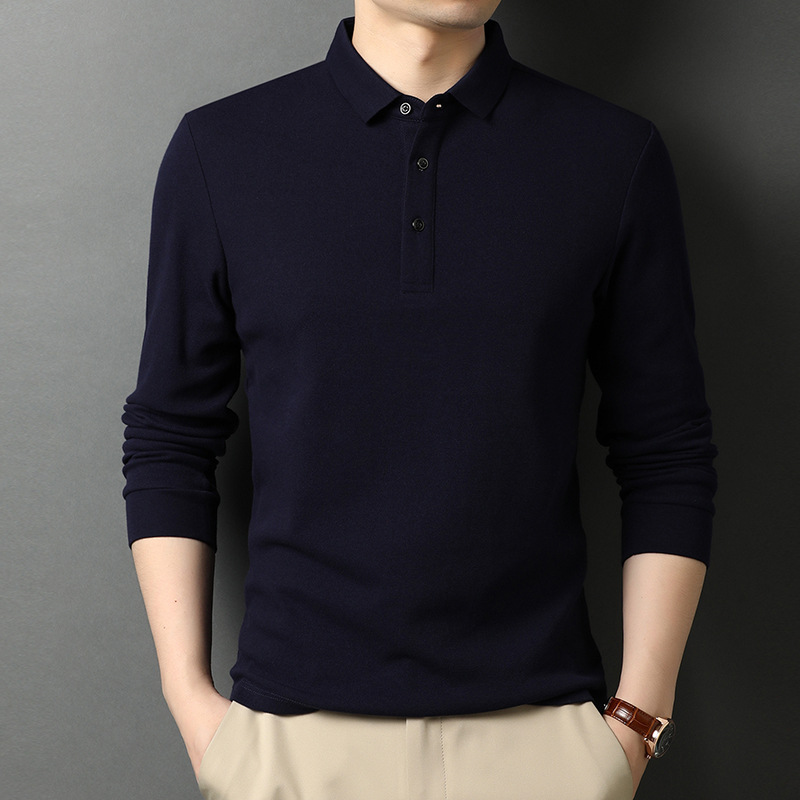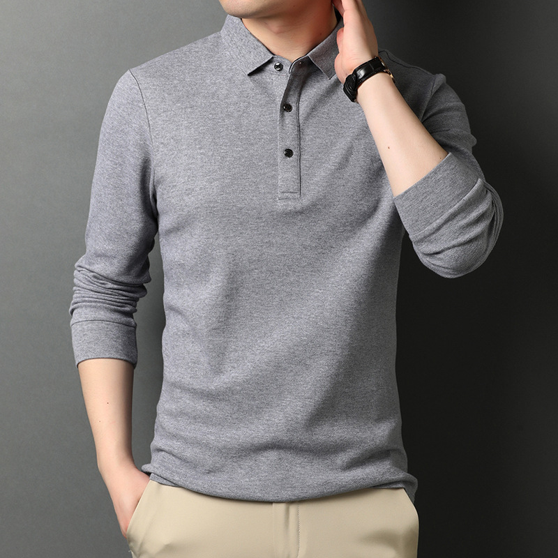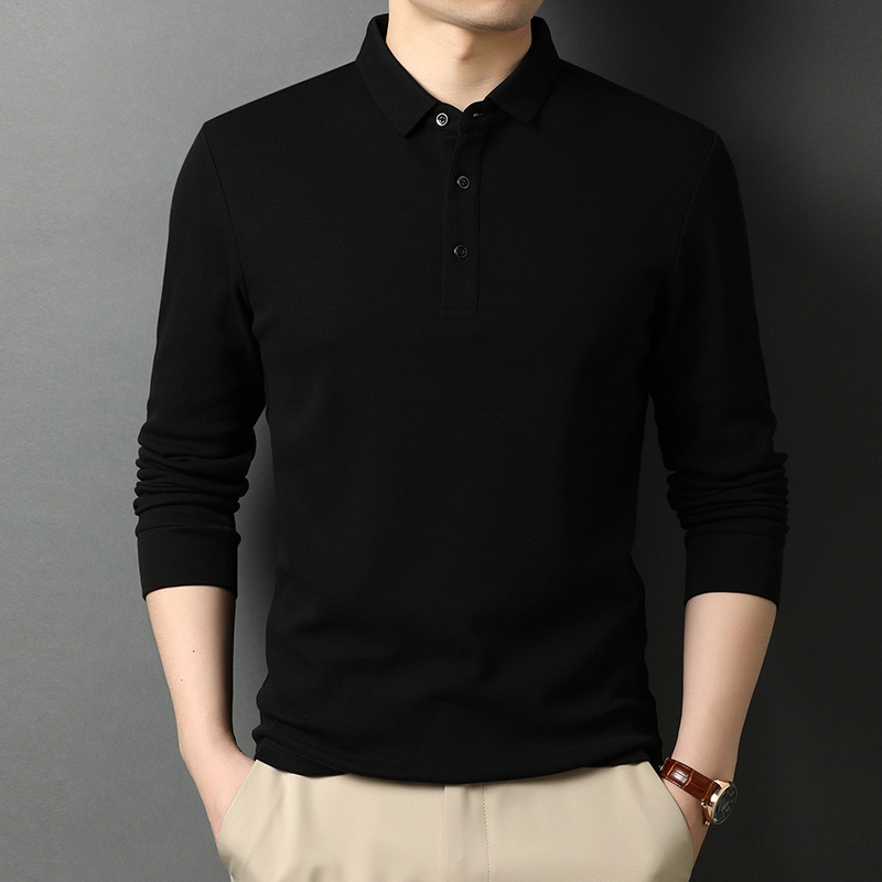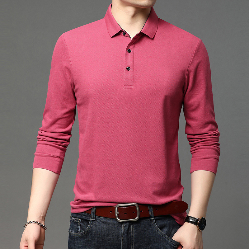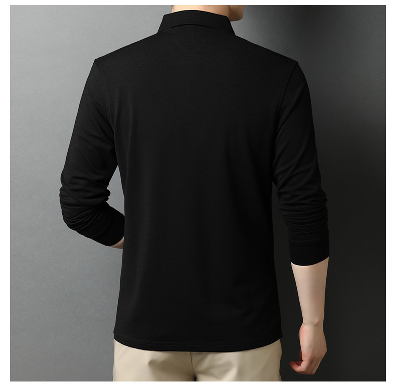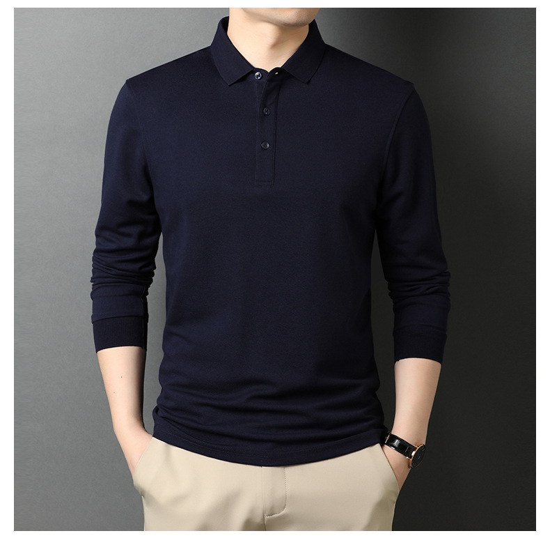 2025 긴팔 티셔츠 남성용 라펠 루즈하고 다재다능한 봄, 가을 얇은 탑 아빠 솔리드 컬러 라펠 티셔츠 남성용 기본 스타일
