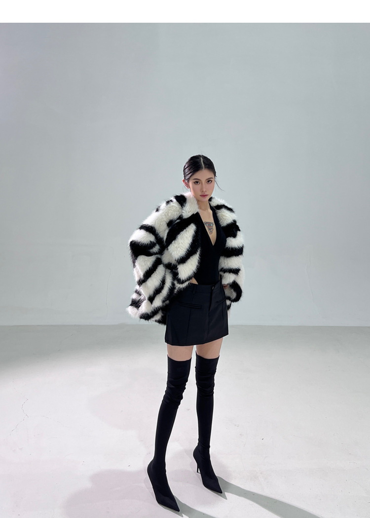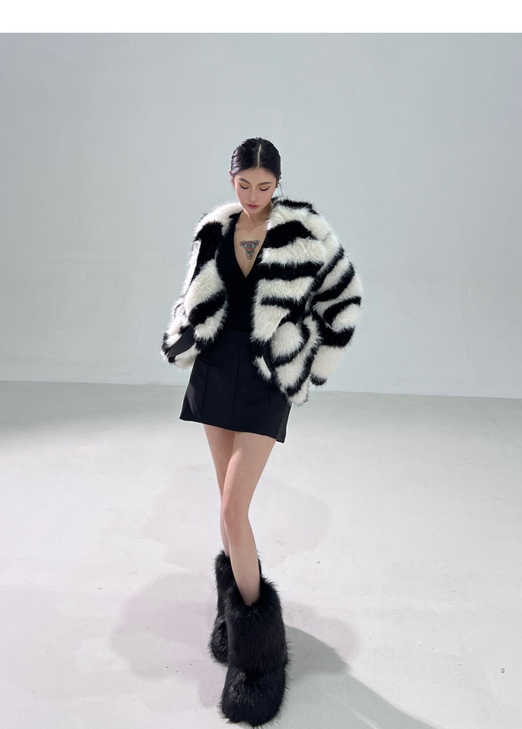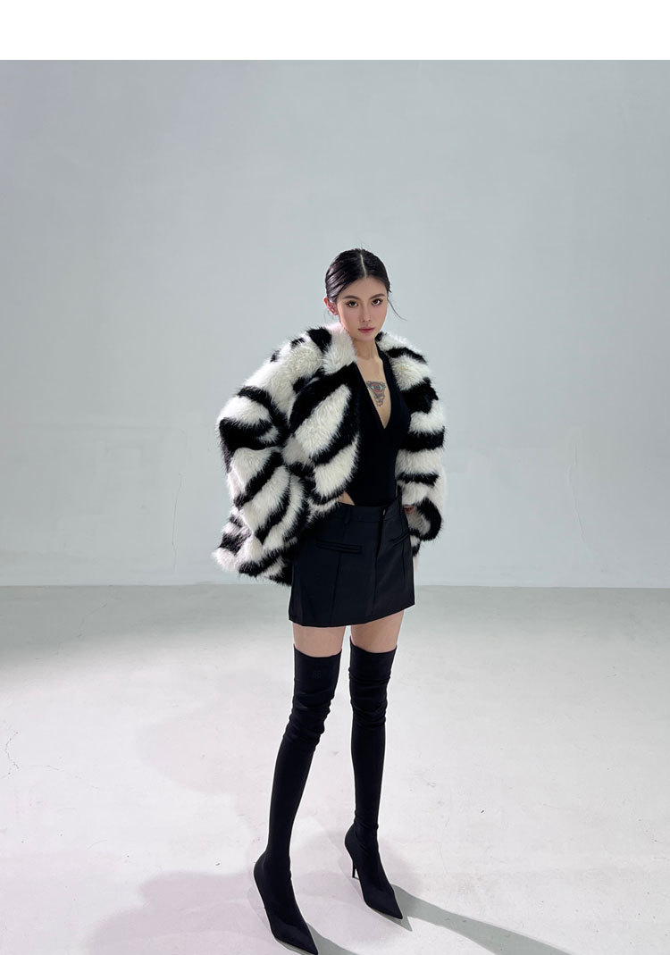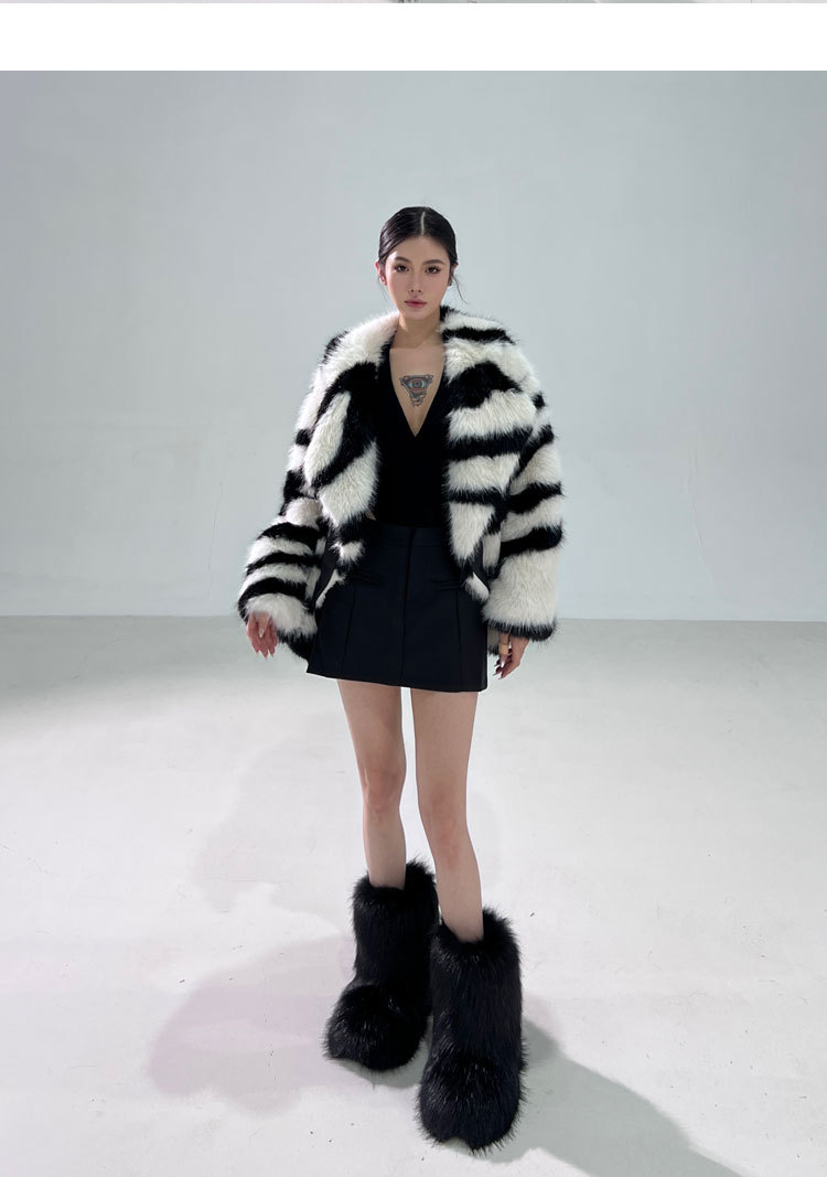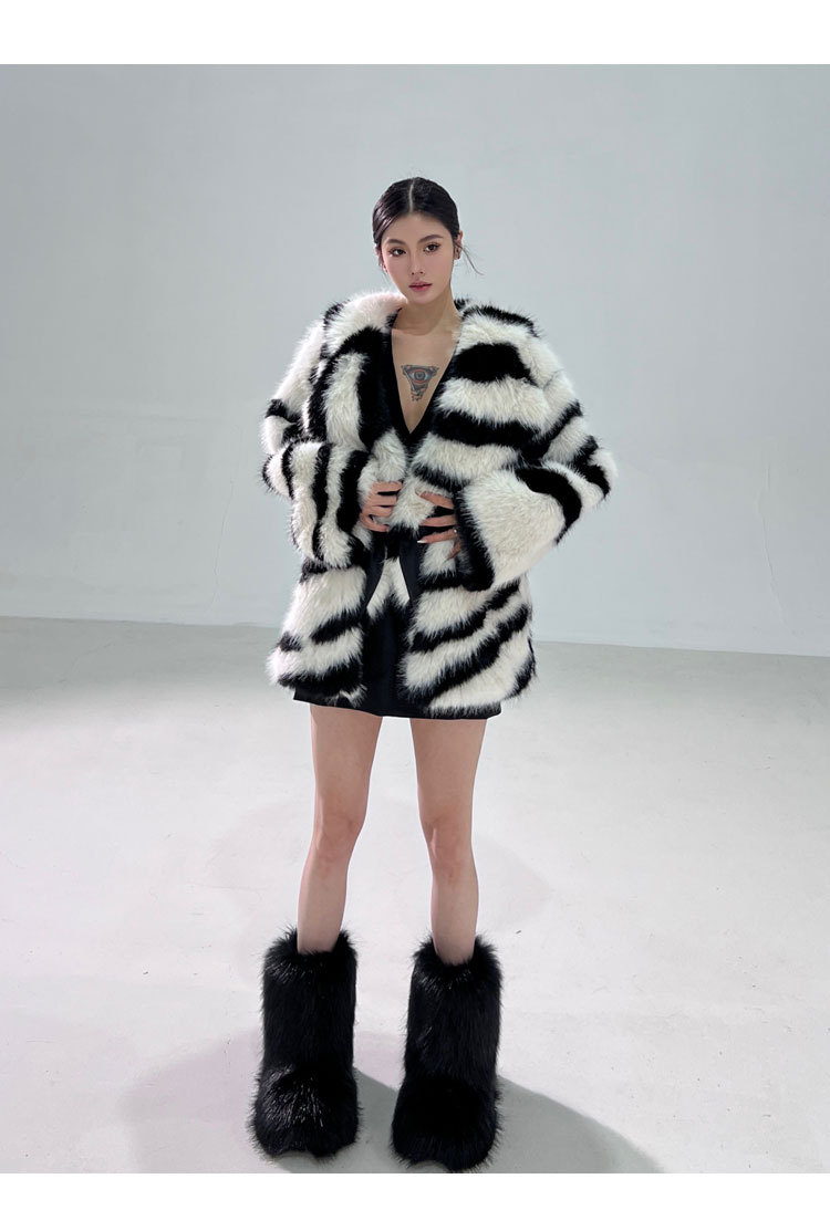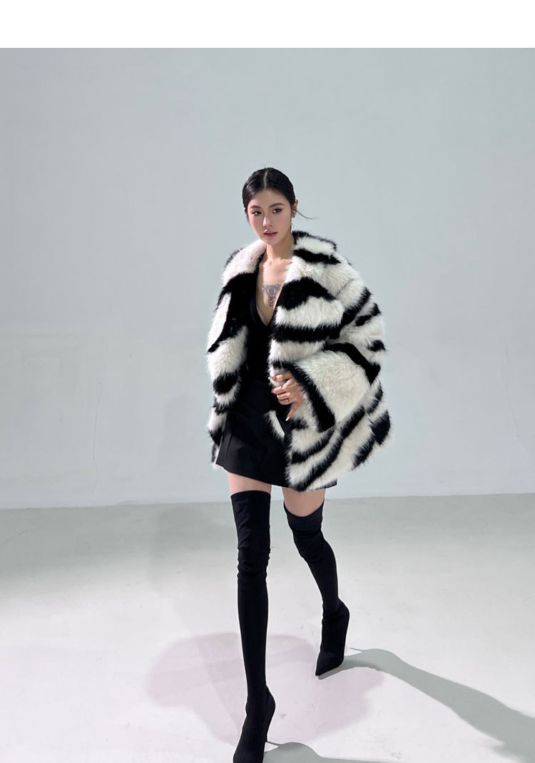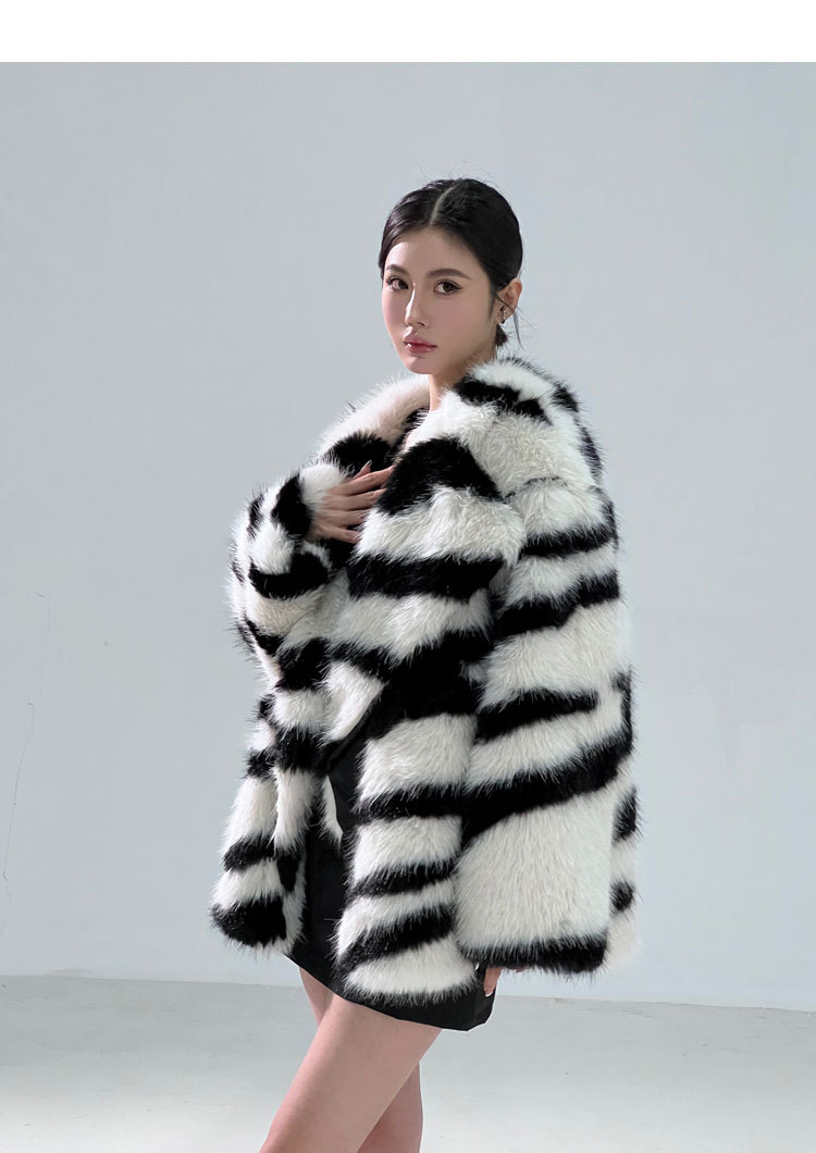 2023 겨울 신상 핫 걸 얼룩말 짧은 친환경 모피 여성용 고급 라펠 흑백 모피 코트 겨울스토어 가기