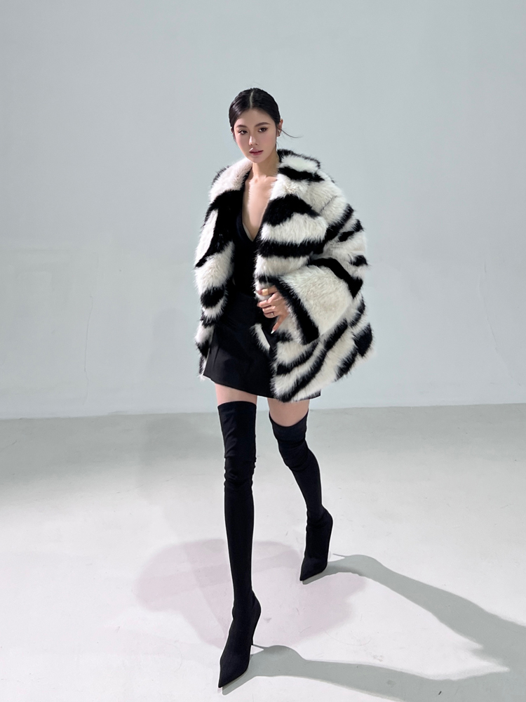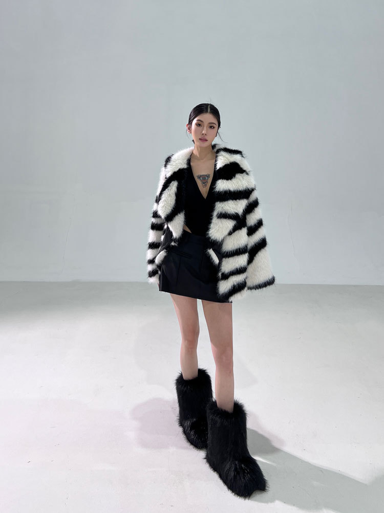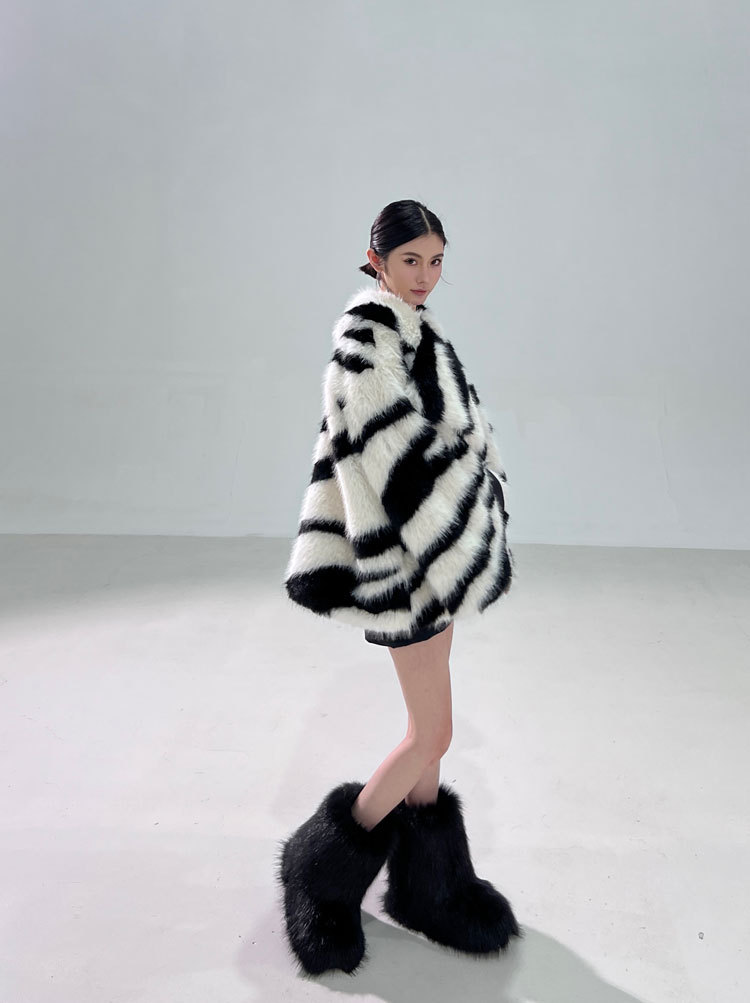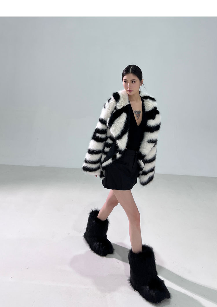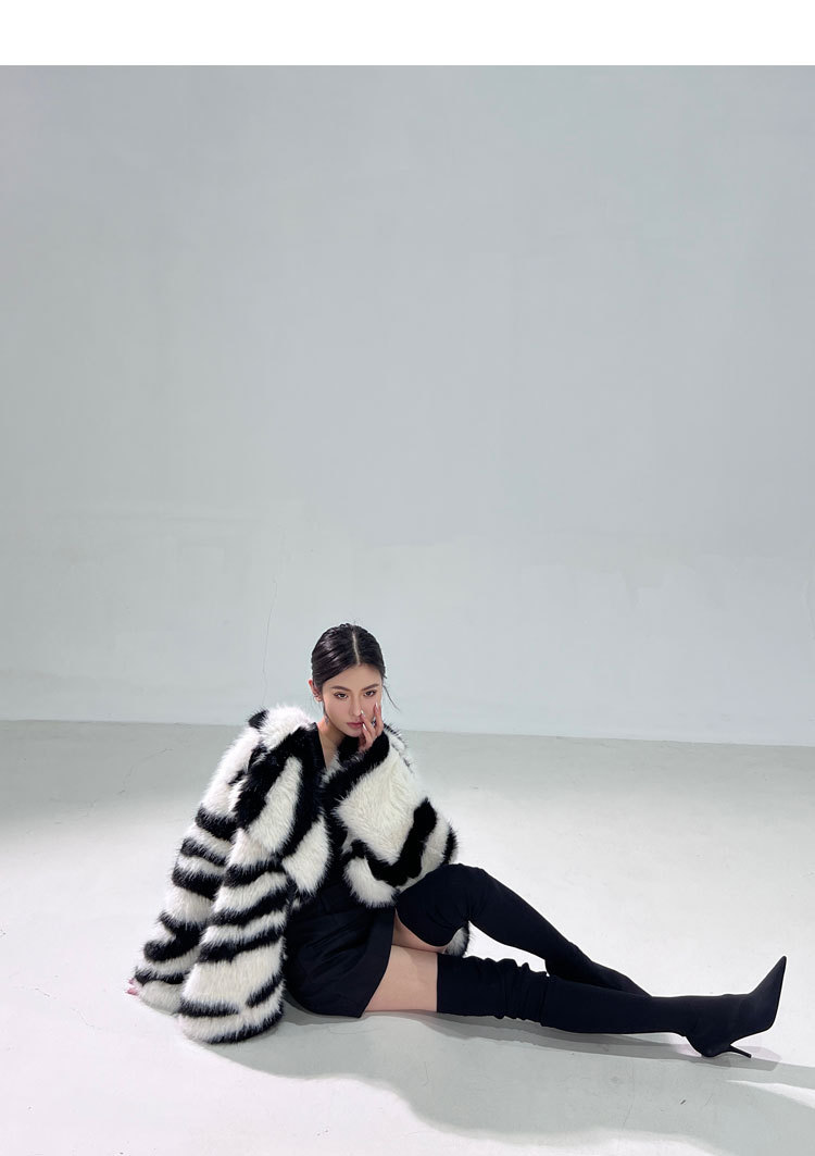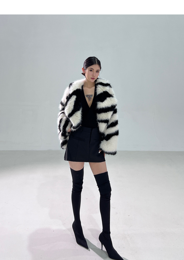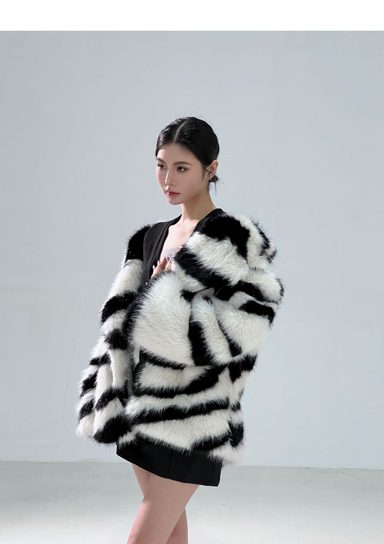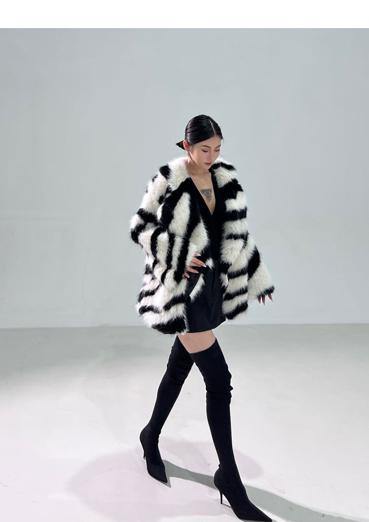 2023 겨울 신상 핫 걸 얼룩말 짧은 친환경 모피 여성용 고급 라펠 흑백 모피 코트 겨울스토어 가기