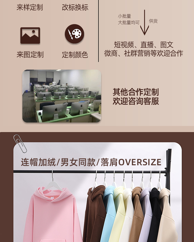 후드 스웨터 겨울 단색 기모 두꺼운 어깨 부드러운 왁스 남성과 여성의 패션 브랜드 느슨한 무거운 430g 스웨터
