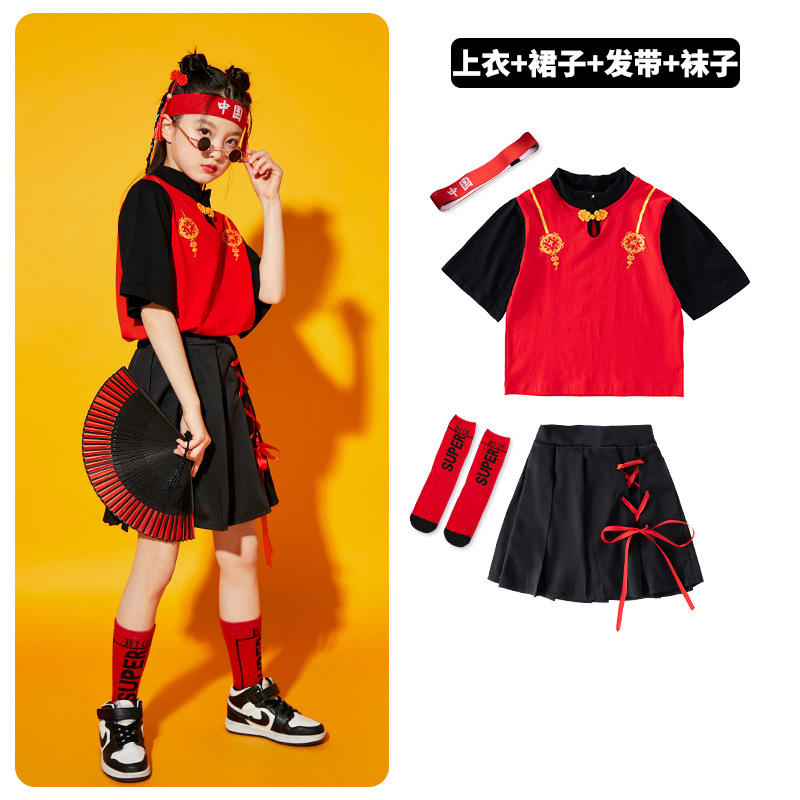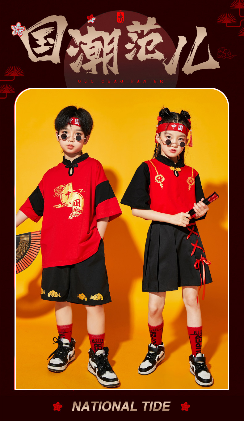 어린이 치어리더 댄스 의상 한푸 초등학생 스포츠 개막식 중국식 공연 의상
