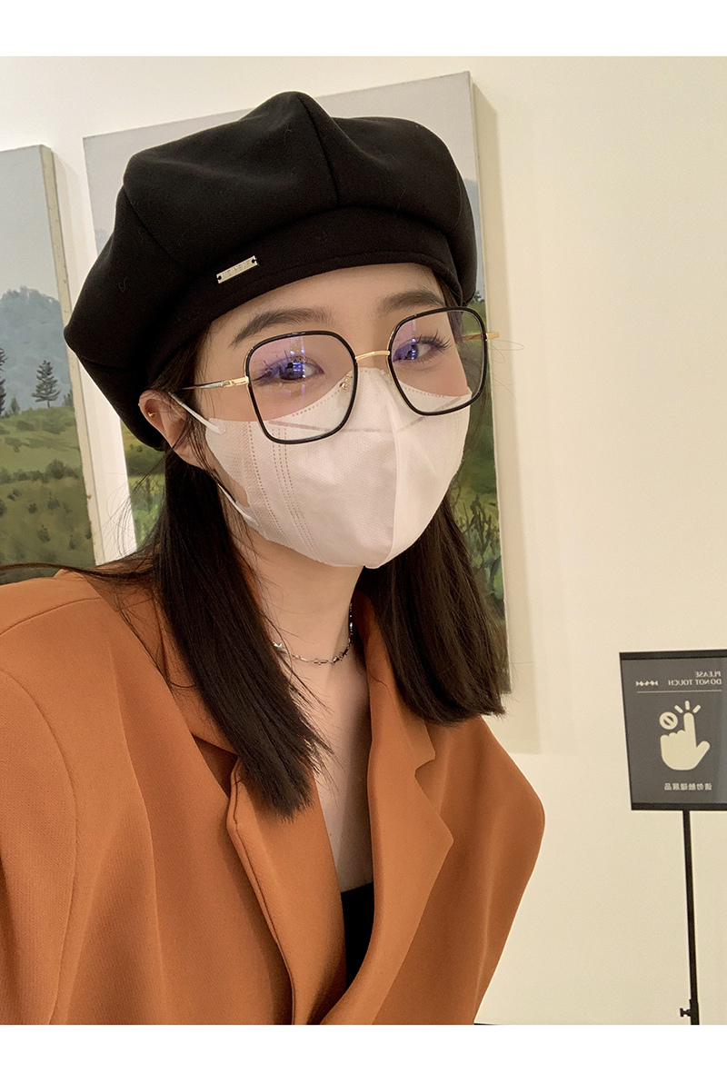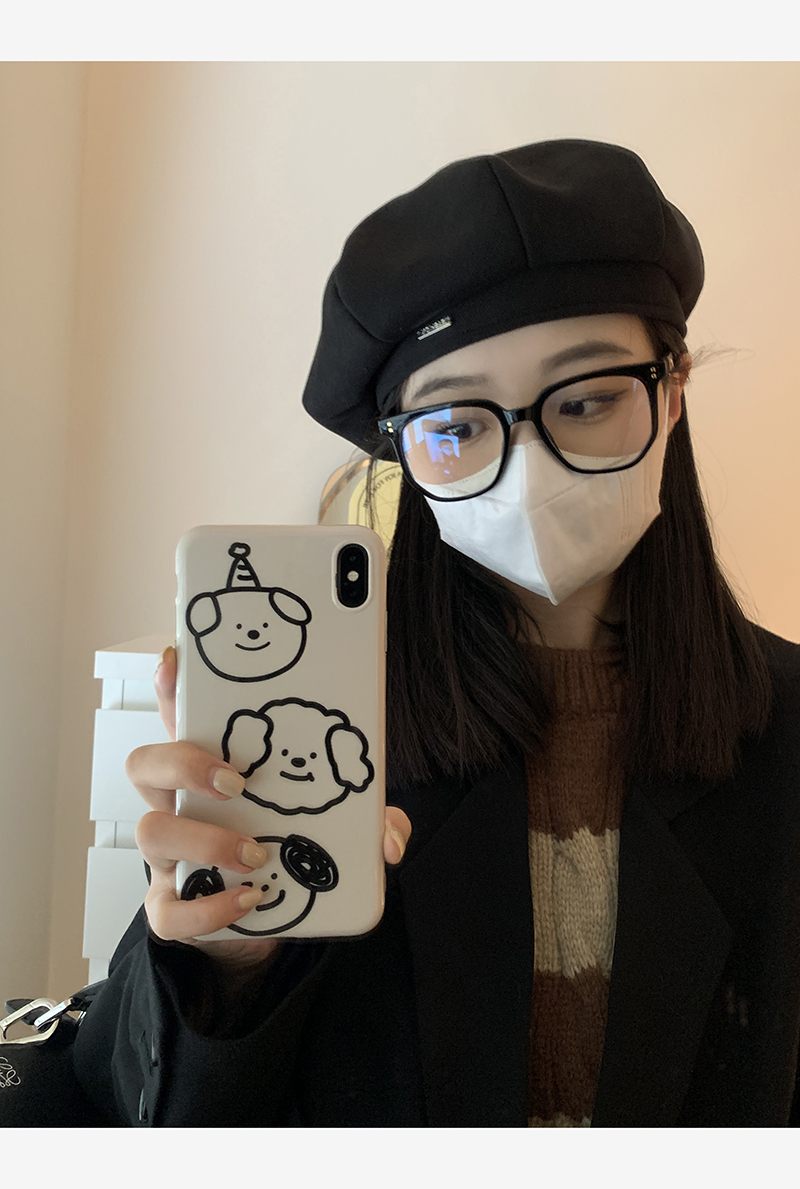 블랙 베레모 여성의 가을과 겨울 레저 모든 경기 일본식 빅 헤드 웨어 레트로 울 팔각형 화가 모자는 작은 얼굴을 보여줍니다