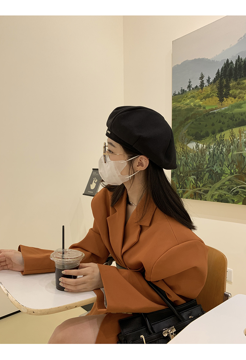 블랙 베레모 여성의 가을과 겨울 레저 모든 경기 일본식 빅 헤드 웨어 레트로 울 팔각형 화가 모자는 작은 얼굴을 보여줍니다스토어 가기