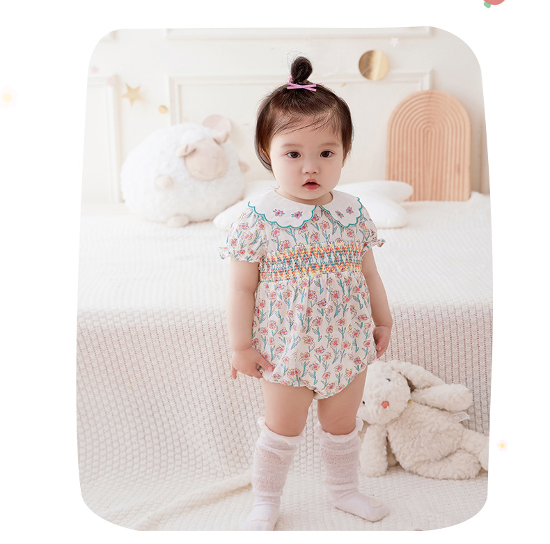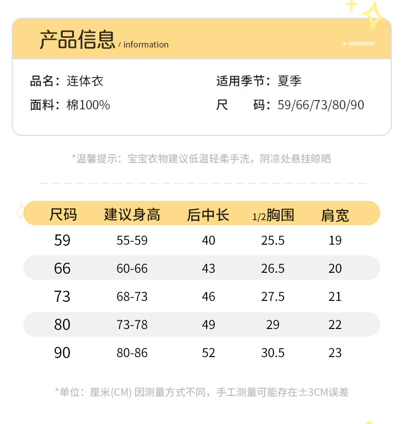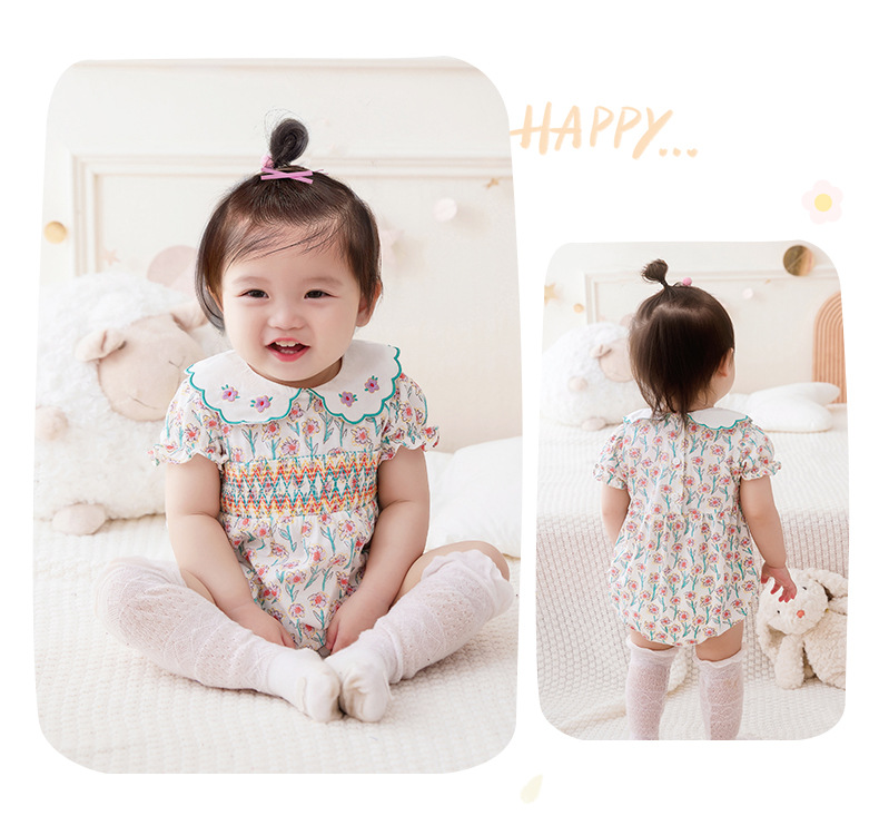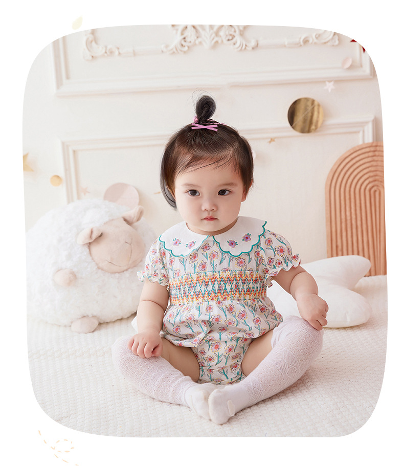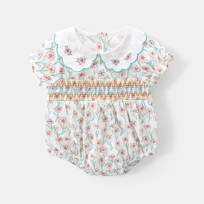 아이디어 소녀 2023 여름 신생아 아기 얇은 점프 수트 아기면 반팔 삼각형 가방 방귀 2750