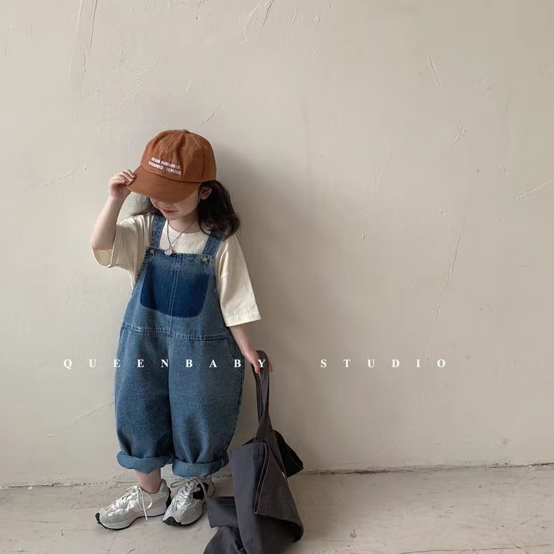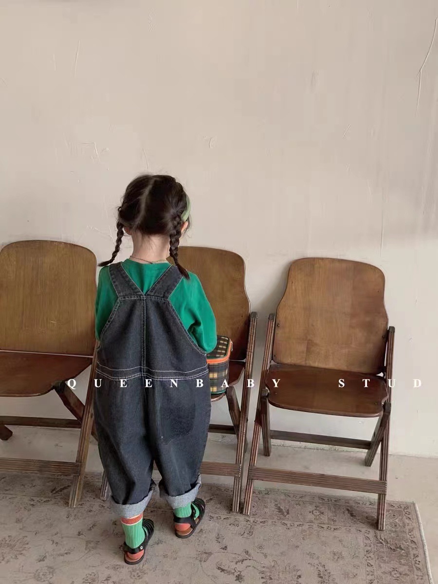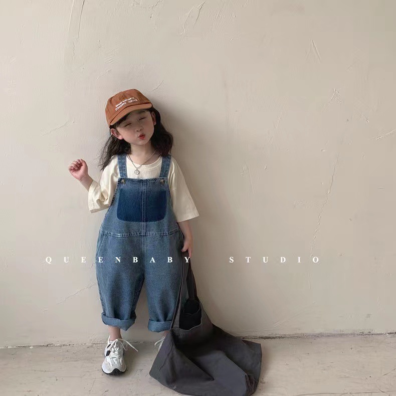 2025 봄과 가을 새로운 어린이 바지 한국 스타일 소녀 데님 작업복 아기 유행 느슨한 데님 작업복스토어 가기