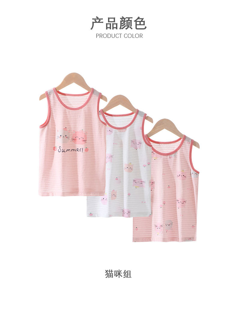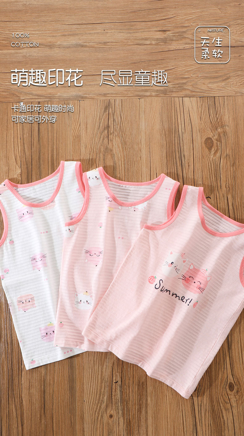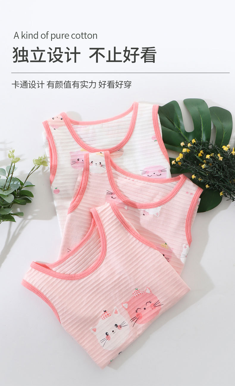 어린이 대나무 면 조끼 3 조각 소녀의 여름 얇은 통기성 작은 조끼 면 땀 흡수 민소매 탑