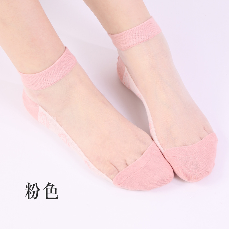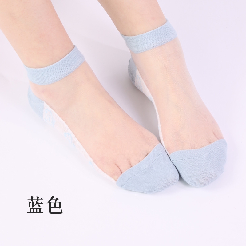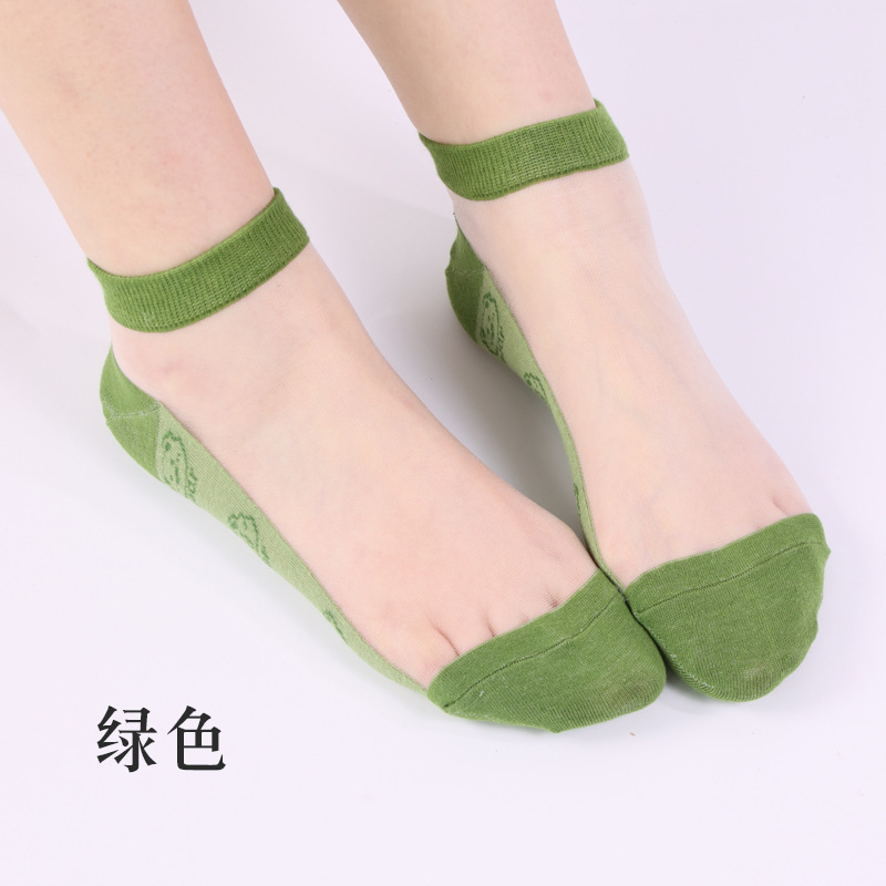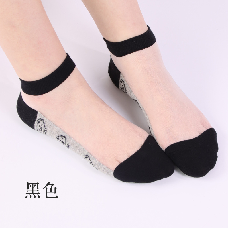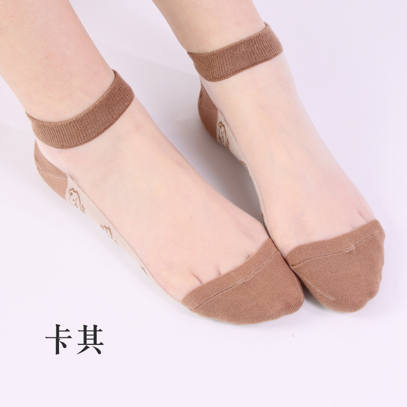 양말 여자 봄과 여름 새로운 캐주얼 일본 곰 유리 실크 보트 여자 양말 투명 크리스탈 실크 숙녀 보트 양말 도매