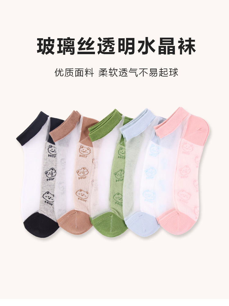 양말 여자 봄과 여름 새로운 캐주얼 일본 곰 유리 실크 보트 여자 양말 투명 크리스탈 실크 숙녀 보트 양말 도매스토어 가기