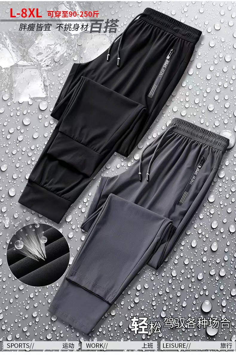 아이스 실크 캐주얼 바지 남성 여름 남성 바지 얇은 유행 브랜드 느슨한 캐주얼 속건 바지 고탄력 스포츠 바지 남성 바지스토어 가기
