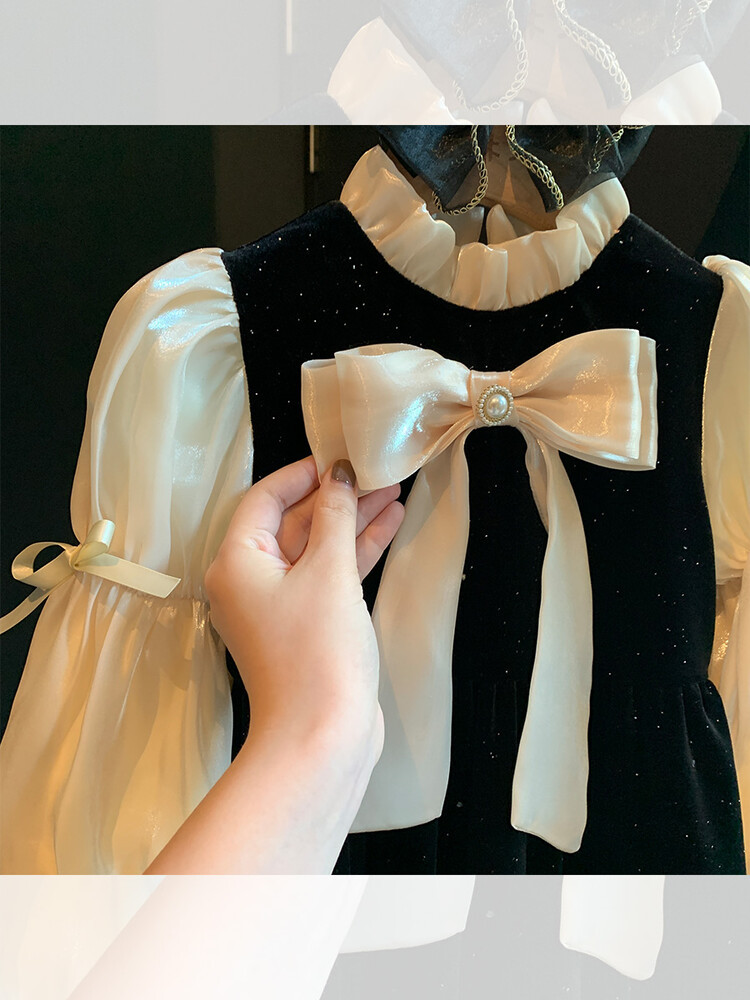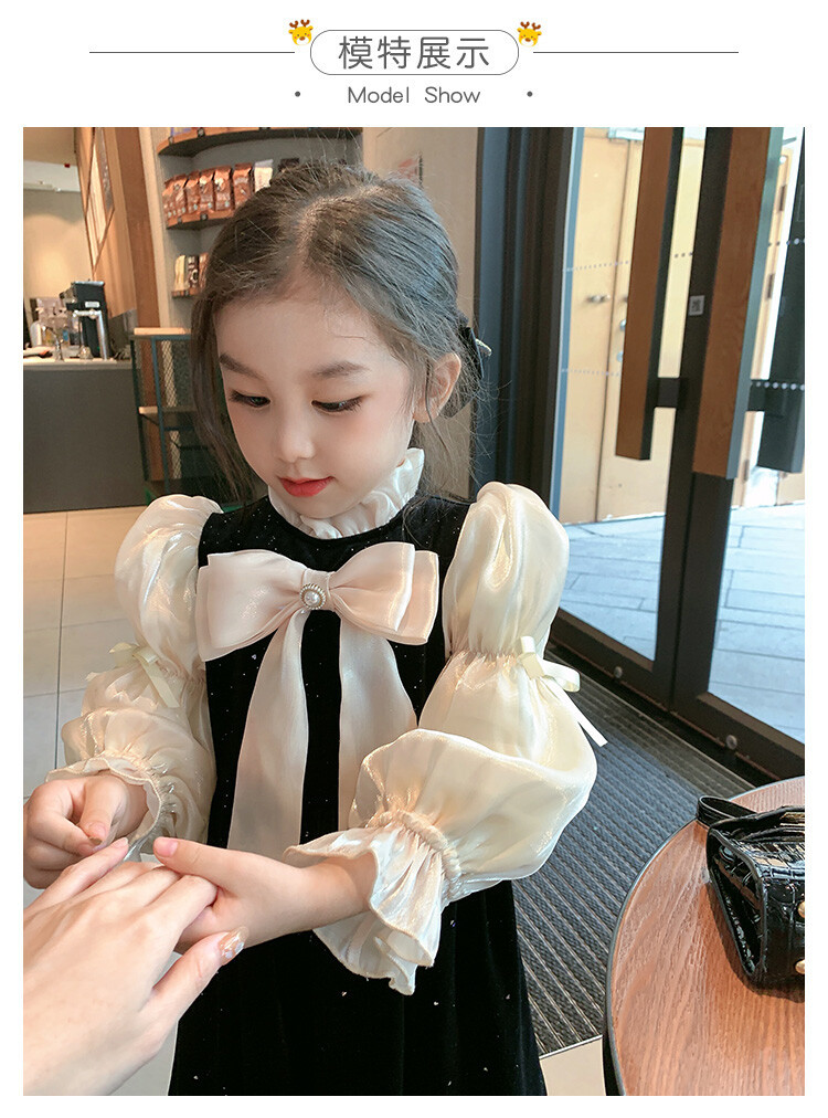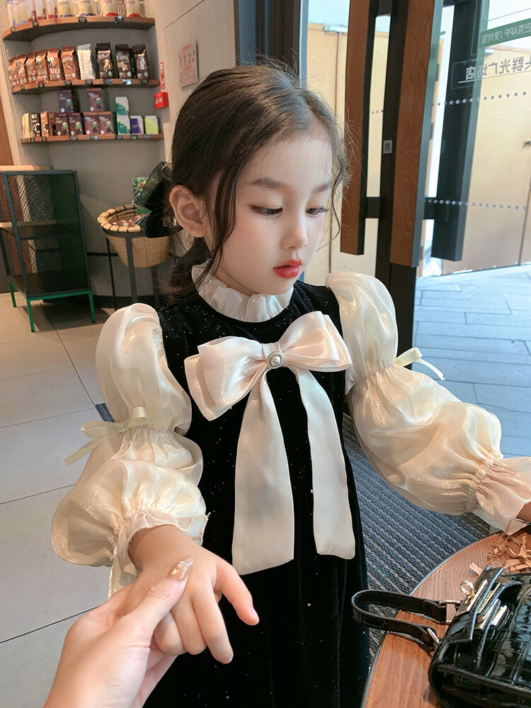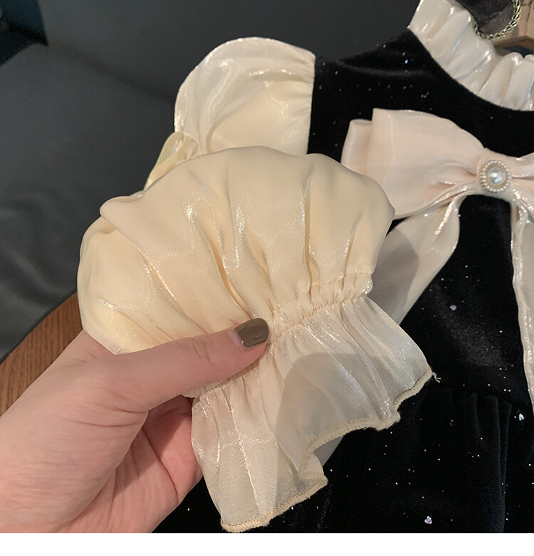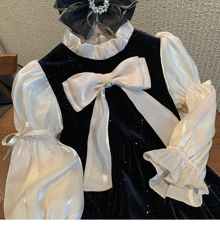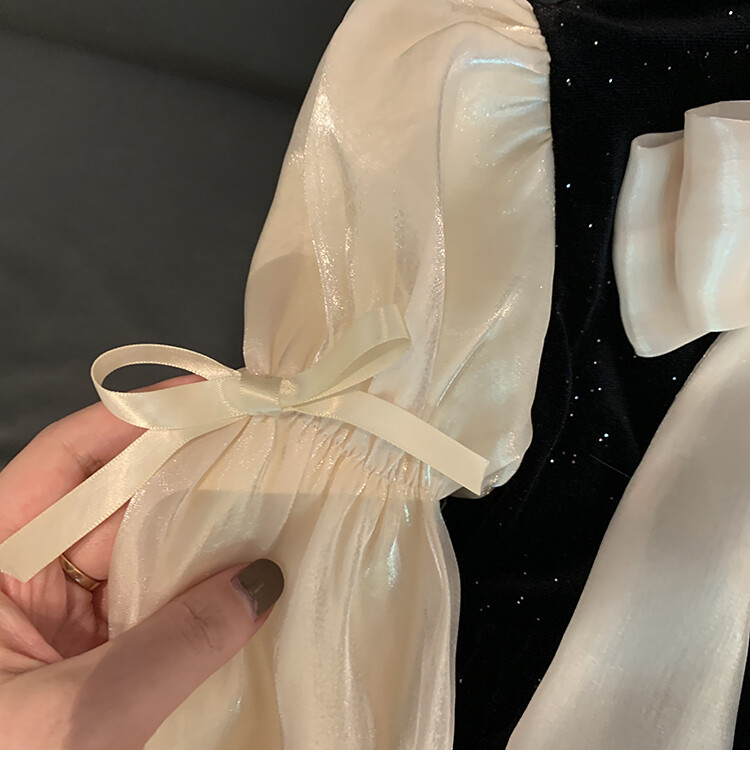 여자 봄, 가을 긴팔 하이 엔드 드레스 2025 서양식 햅번 작은 향기로운 활 퍼프 슬리브 드레스 스커트스토어 가기