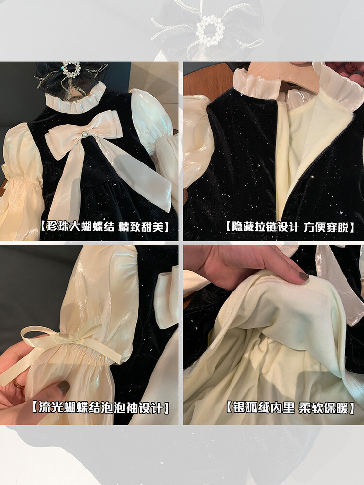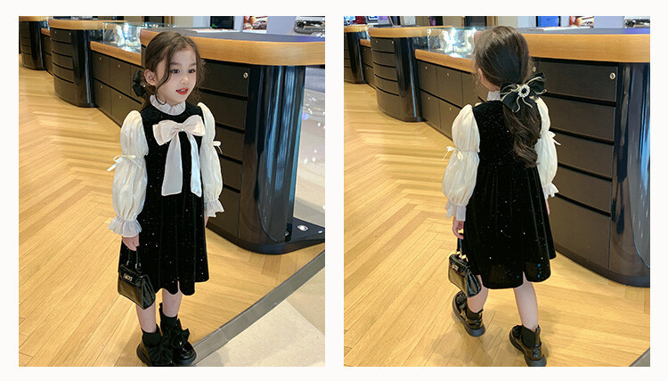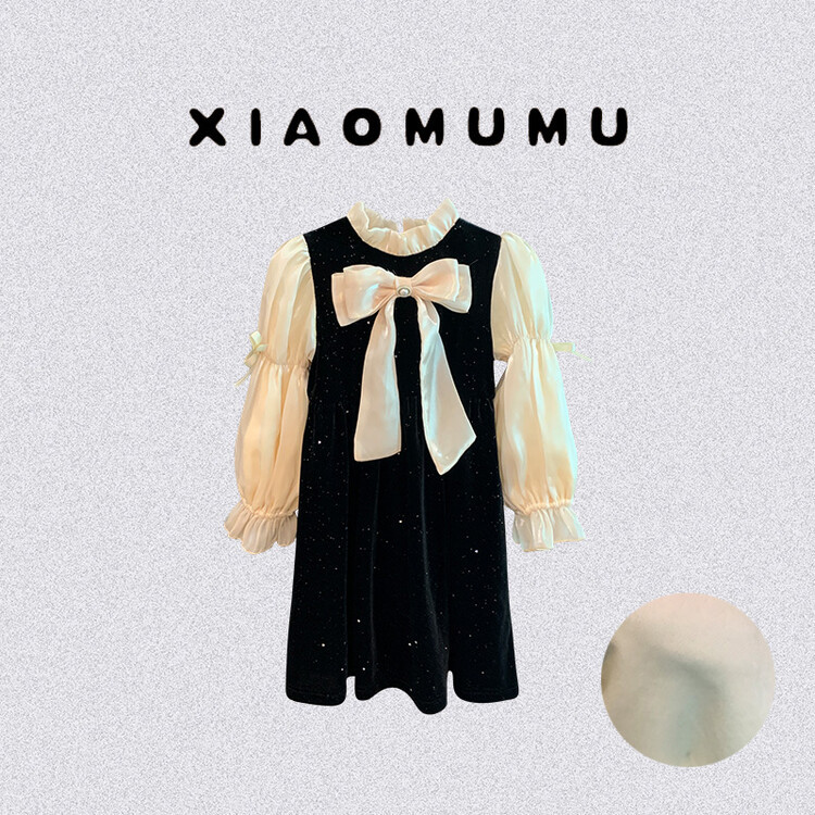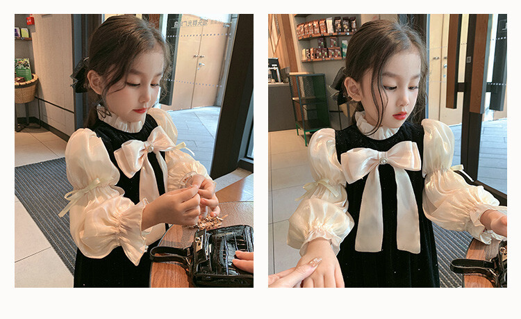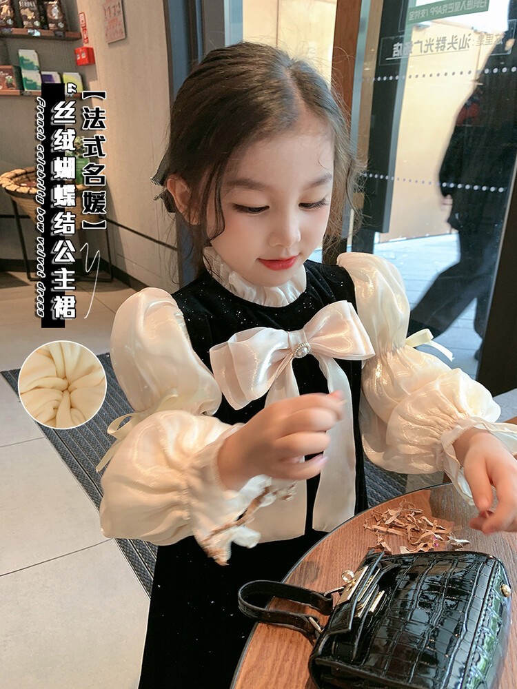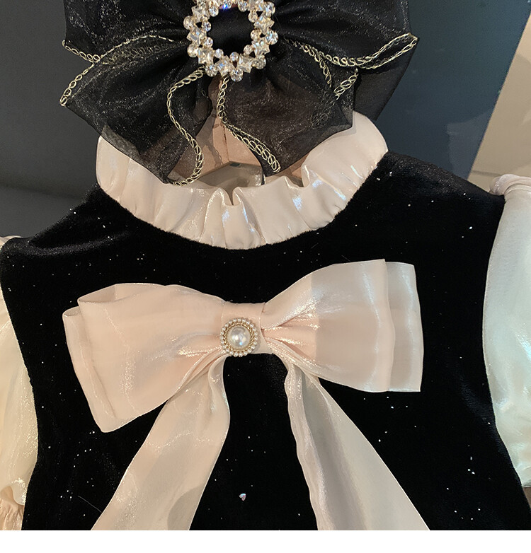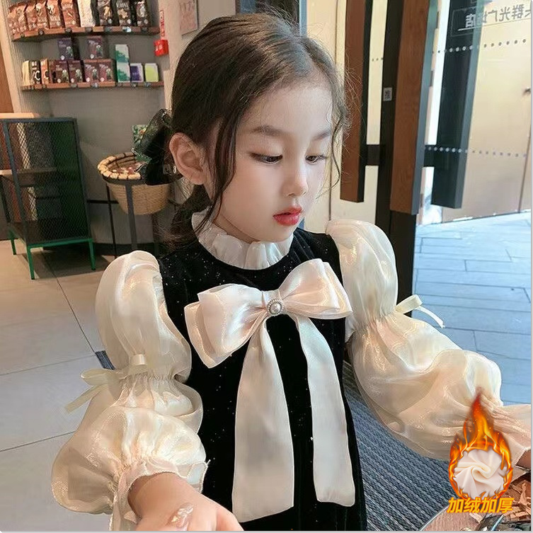 여자 봄, 가을 긴팔 하이 엔드 드레스 2025 서양식 햅번 작은 향기로운 활 퍼프 슬리브 드레스 스커트스토어 가기