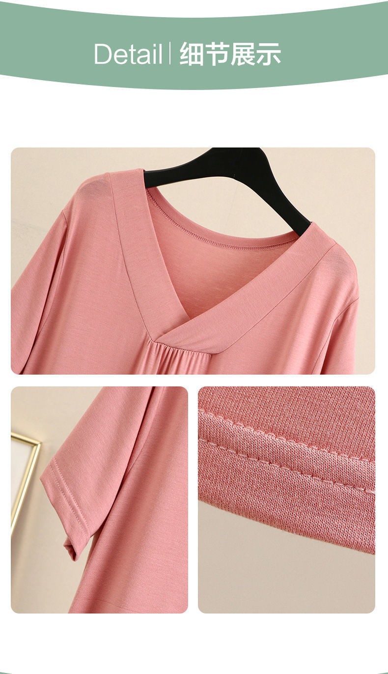 모달 얇은 V-넥 중간 길이 원피스 여름 플러스 사이즈 반팔 잠옷 느슨한 큰 스윙 원피스 홈 원피스 A-라인 원피스스토어 가기