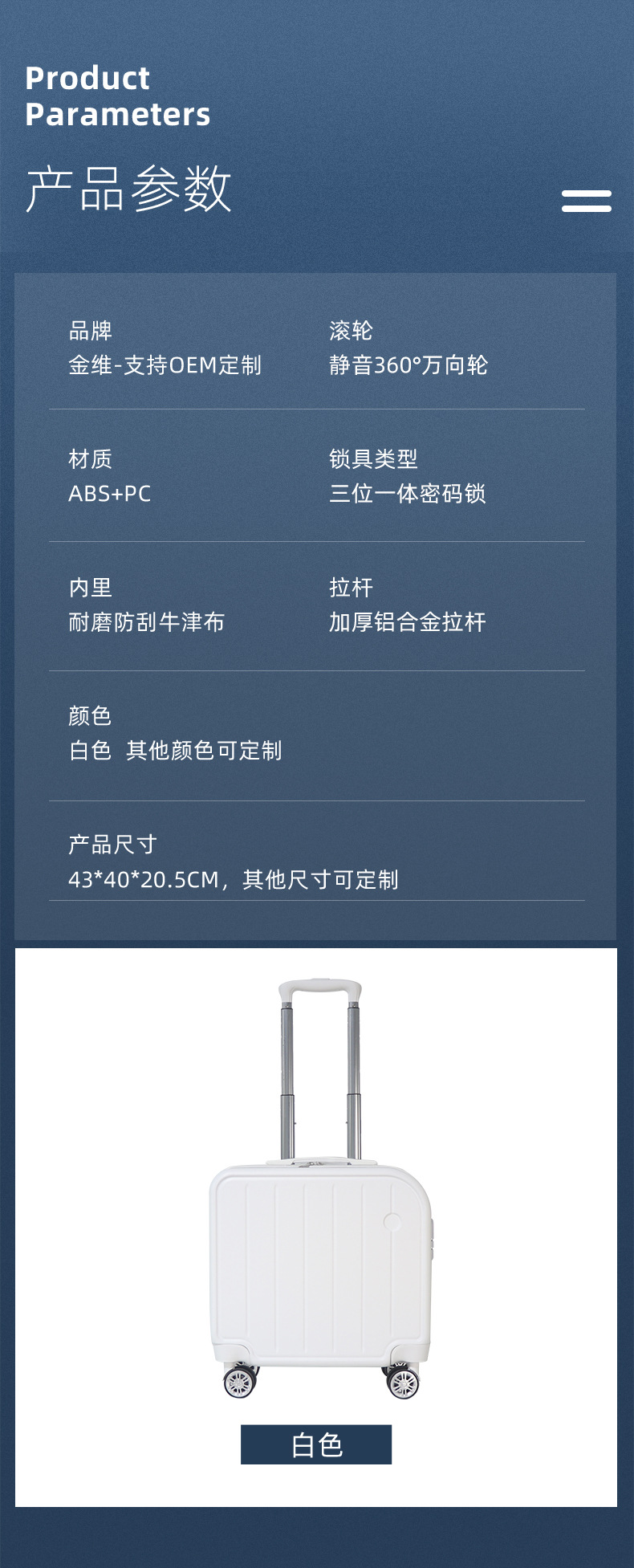 패션 새로운 18 인치 비즈니스 PC 트롤리 케이스 소형 휴대용 탑승 암호 상자 제조 업체 도매 트롤리 수하물