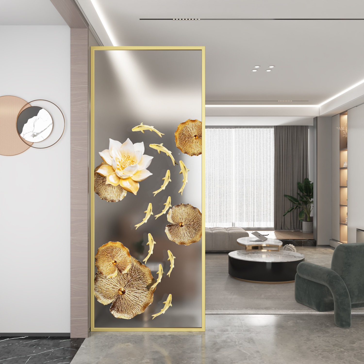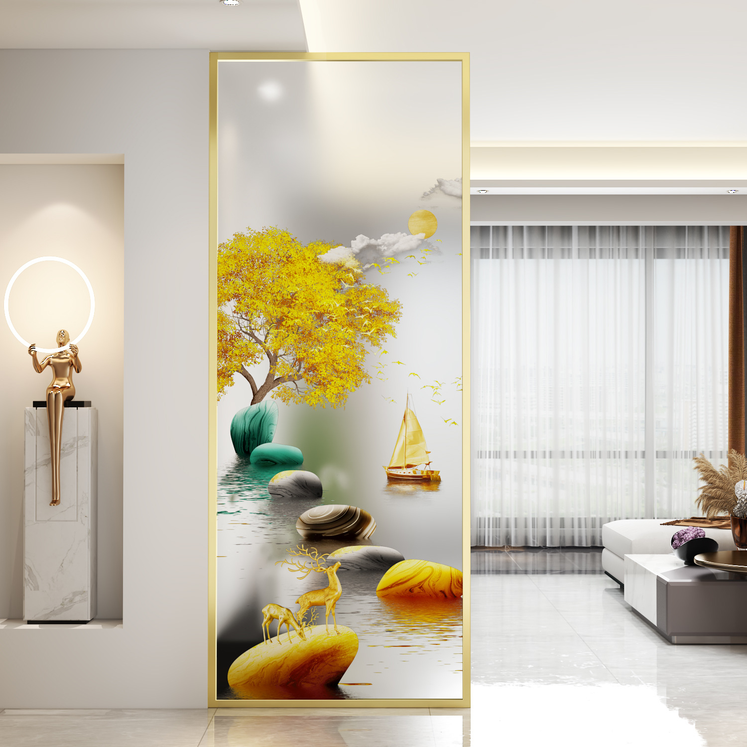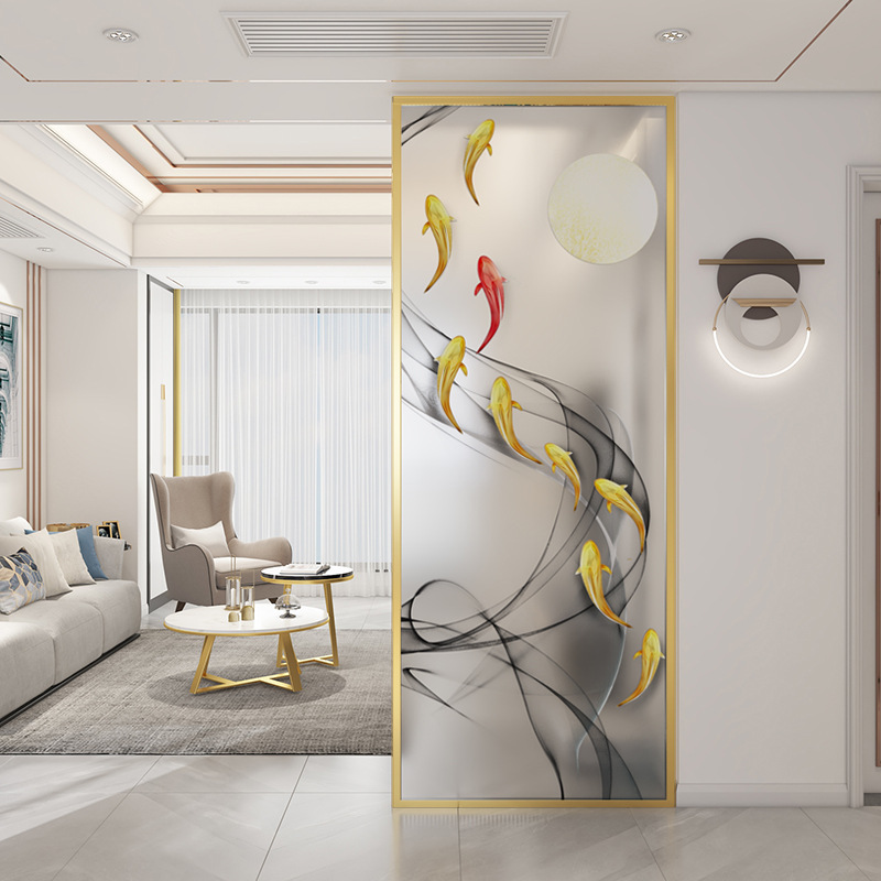 현대 간단한 예술 유리 스크린 철 스테인레스 스틸 파티션 벽 거실 입구 복도 대피소 장식 홈