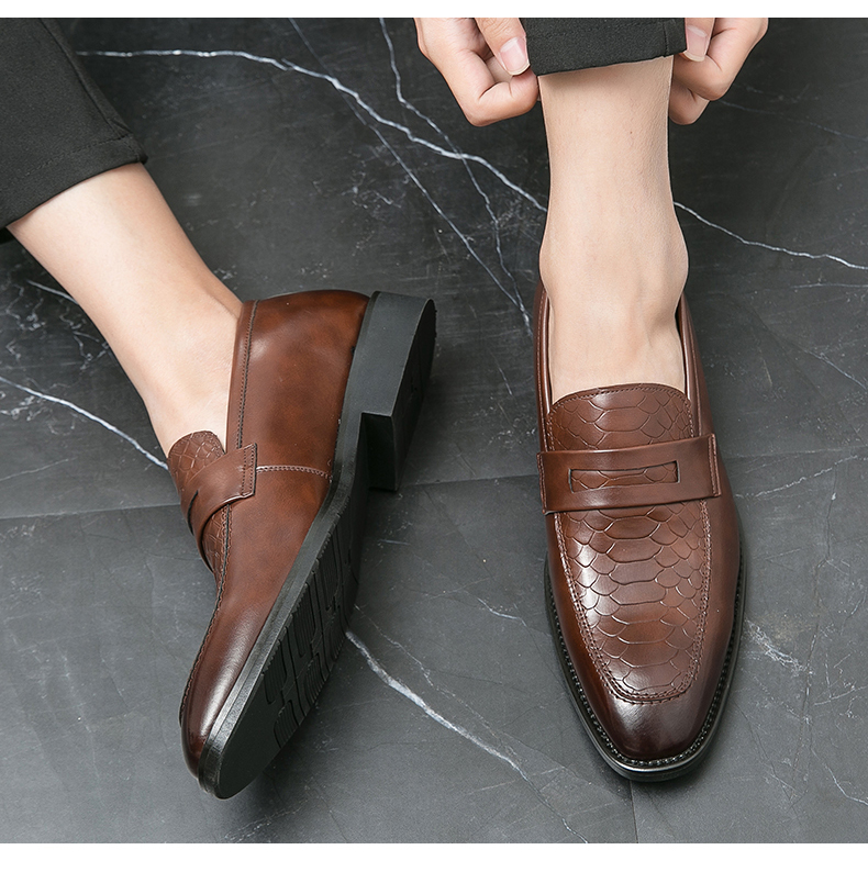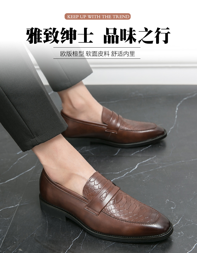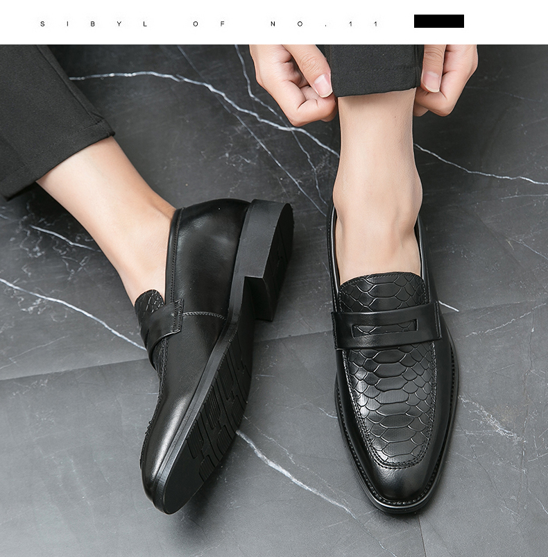 가죽 신발 남자의 슬립온 뾰족한 발가락 캐주얼 남자 신발 봄 새로운 남자의 비즈니스 원피스 뾰족한 발가락 작은 가죽 신발 내부 높이